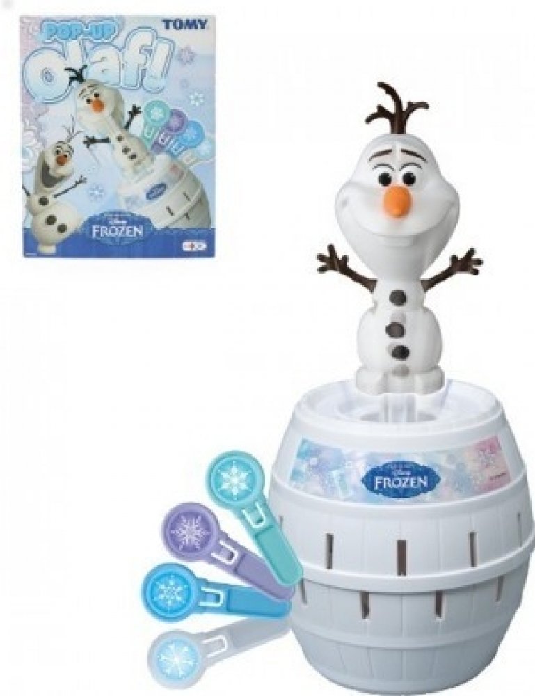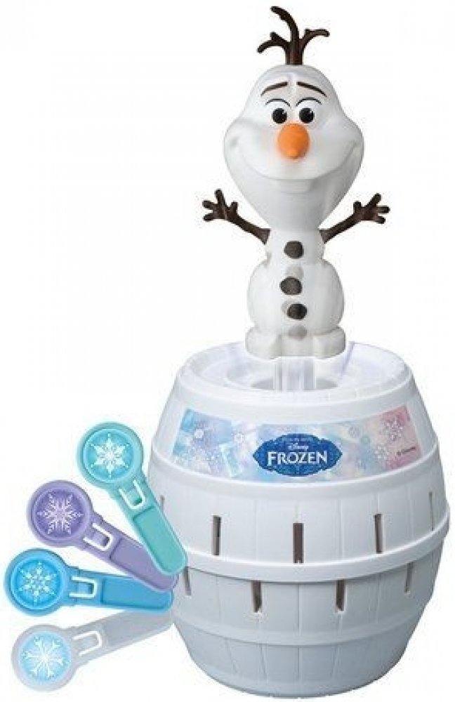 Komu jako prvnímu vyletí Olaf z ledového sudu? Akční hra pro celou rodinu. Pro kompletnost hry, opatrně přilepte přiložené nálepky na určená místa. Olafa umístěte na sud a přitiskněte dolů do sudu. Pokaždé bude vykukovat jinak. Hráči si zvolí svou oblíbenou barvu zastrkovací vločky a budou doufat, že právě jemu Olaf nevyskočí. V této hře se vločky zabodávají do sudu. Musíte být ale opatrní, stačí jeden chybný krok a Olaf vyletí ven ze sudu.