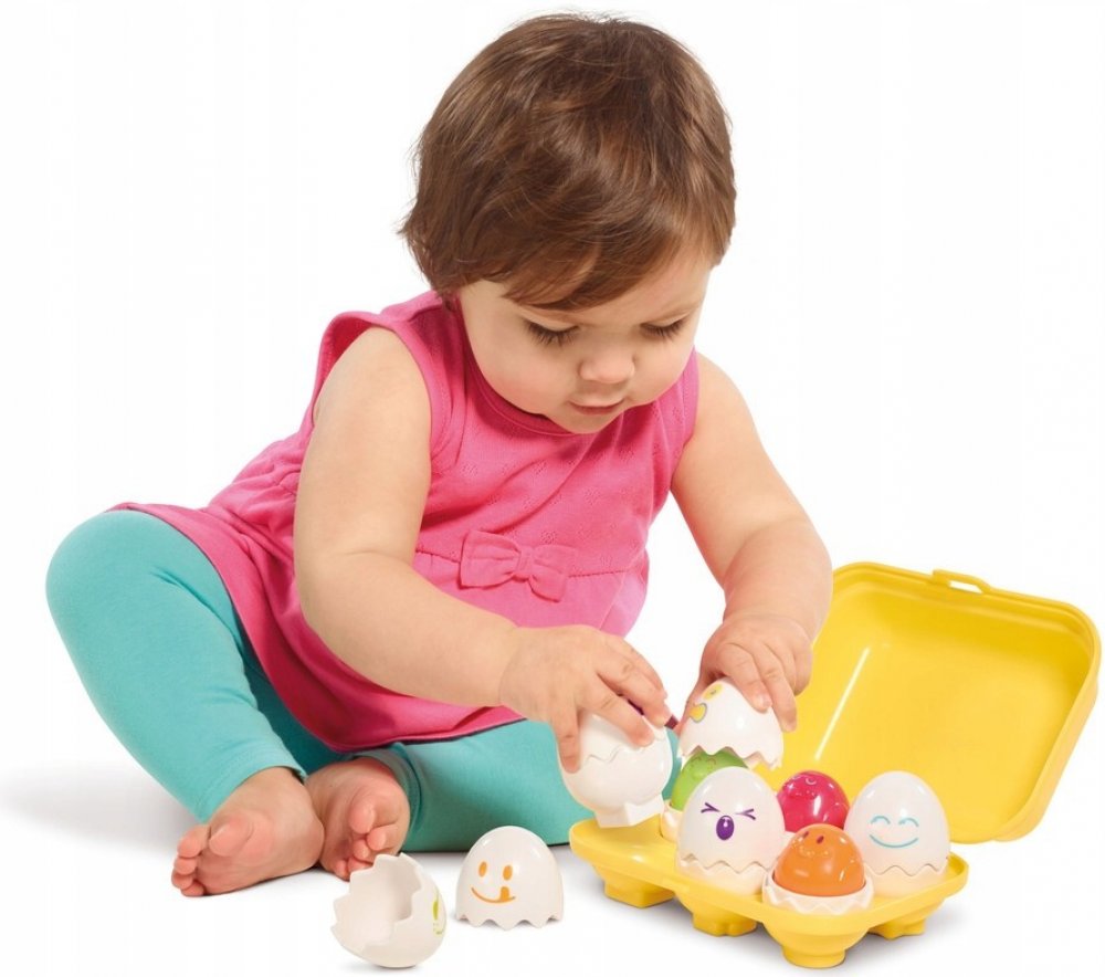 Pískající vajíčka představují zábavnou hračku pro nejmenší děti. Balení obsahuje krabičku a šest vajíček s kuřátky. Po odendání skořápky a zmáčknutí hlavičky kuřátka uslyší dítě legrační pípání. Tato hračka je ideálním pomocníkem pro rozvoj jemné motoriky a logického uvažování dětí od 6 měsíců. Poutavé zpracování kuřátek i skořápek vaši ratolest zaujme a bude ji motivovat k bližšímu zkoumání.