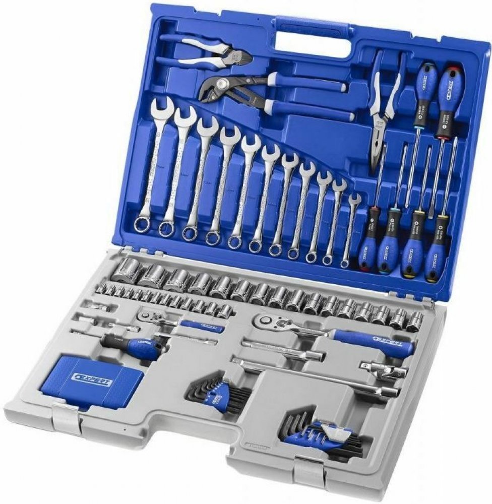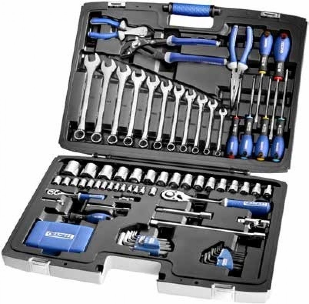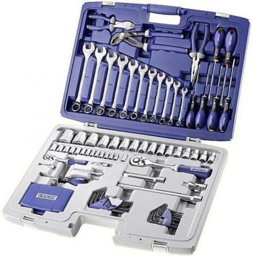 Vysoce praktická a rozsáhlá souprava s univerzálním použitím v autoservisu, dílně, domácnosti a na mnoha dalších místech. Obsahuje dvě „golovky“ s 6hrannými hlavicemi (tzv. ořechy) a mnoho druhů ručního nářadí. Díky tomu není nutné kupovat jednotlivé kusy zvlášť – vše podstatné najdete v jednom kufříku.
