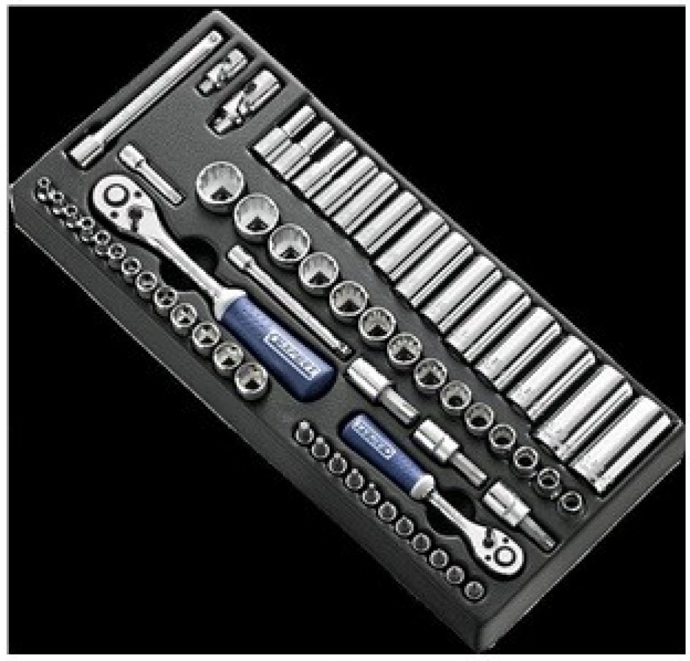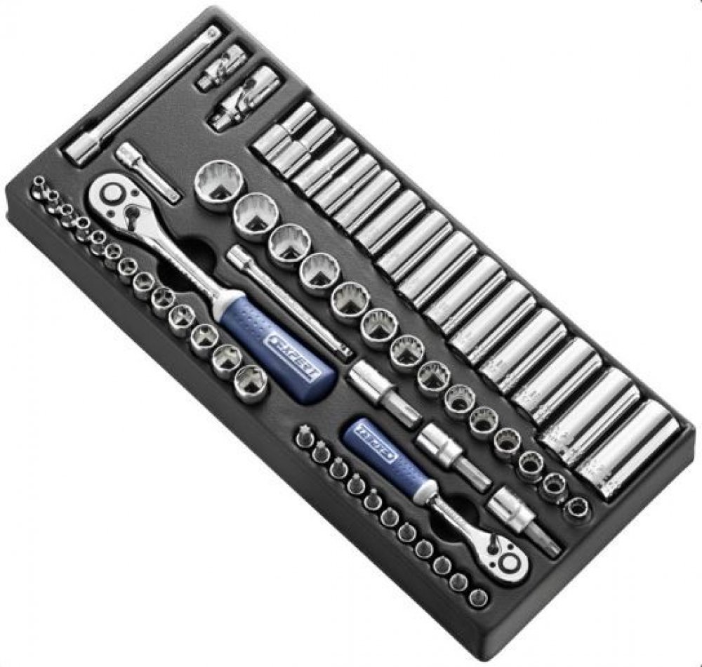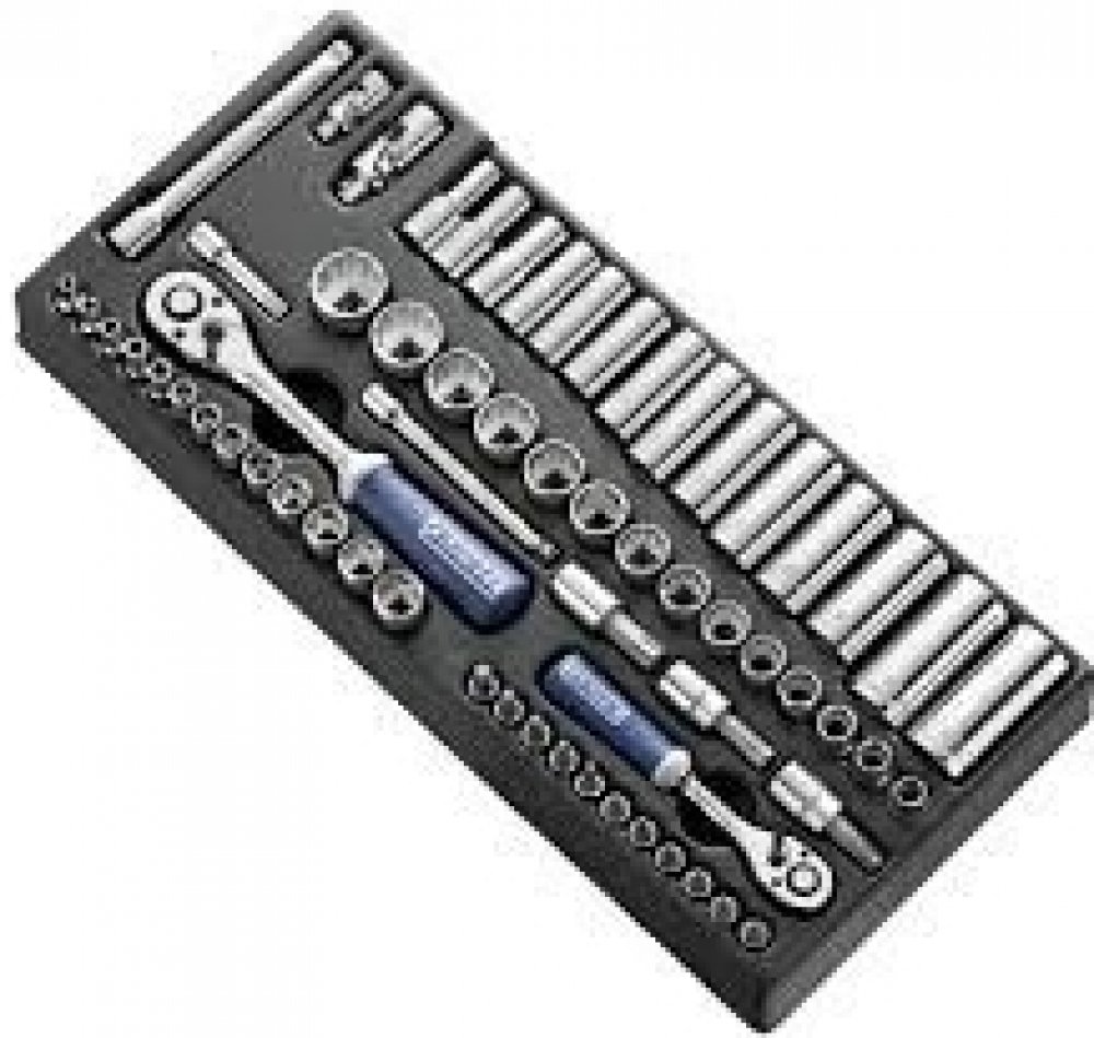 - 3/8" zástrčné hlavice Torx®: T45 - T50 - T55 - 1/4" ráčna s přepínací páčkou