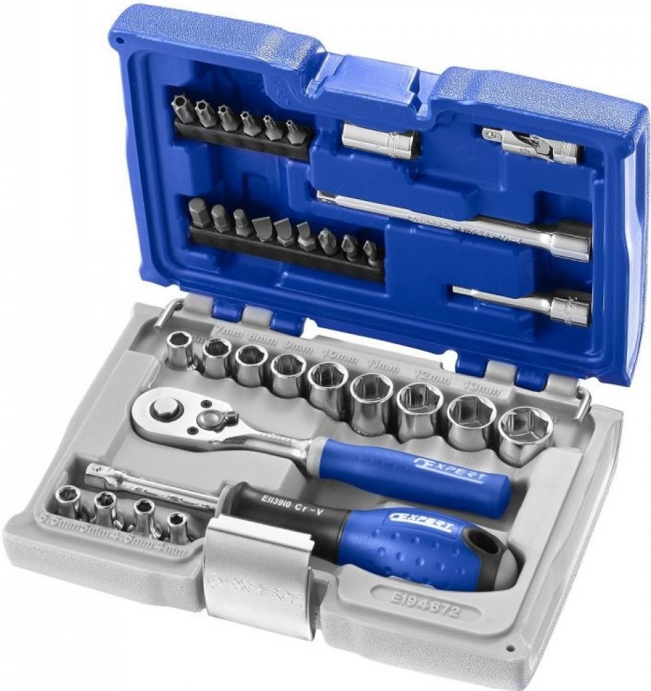 Sada 1/4" TONA EXPERT v profesionálním plastovm kufříku, který umožňuje snadné uložení a přenášení nářadí.
