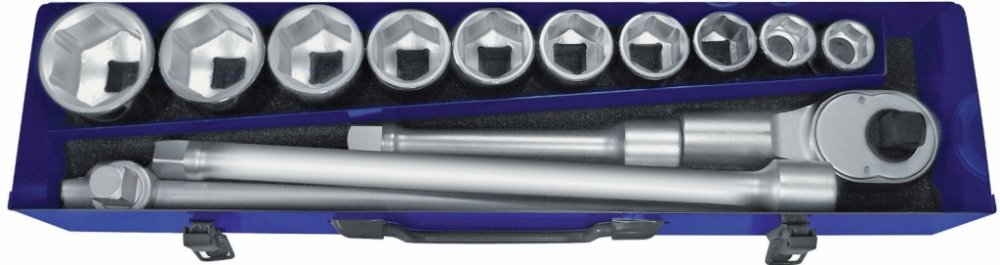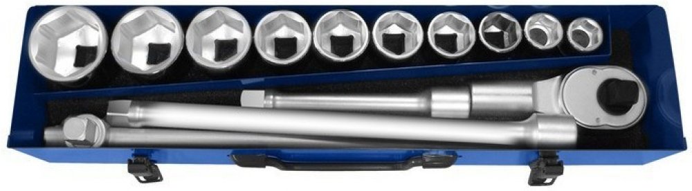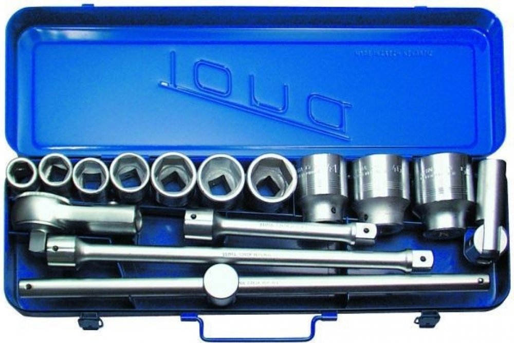 Sada nářadí 3/4", 14 ks, 6hran - Tona Expert (E194682T) Praktická „golovka“ vhodná pro profesionály, ale i domácí kutily. Sada je uložena v kovovém kufříku. Sada obsahuje: - 10x 3/4" 6hranné hlavice: 22-24-27-30-32-34-36-41-46-50 mm - 1x 3/4" ráčna s přepínací páčkou - 1x 3/4" prodlužovací nástavec 200 mm - 1x 3/4" prodlužovací nástavec 400 mm - 1x 3/4" vratidlo