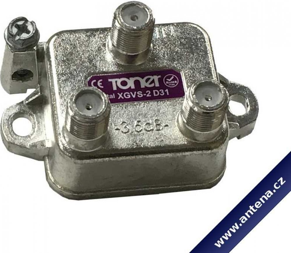 Rozbočovače XGVS představují vysoce kvalitní širokopásmové rozbočovače pracujících v pásmu 5-1200 MHz. Jsou vhodné pro instalace do STA a kabelových rozvodů. Rozbočovače jsou umístěny v pocínovaném odlitku s vynikajícím stíněním. Vstupy a výstupy jsou na F-konektory. Rozbočení pro 2 větvě s útlumem 3,7dB.