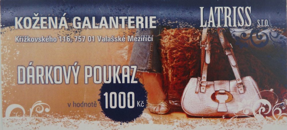 DÁRKOVÝ POUKAZ v hodnotě 1000,- Vám zašleme ve stylové dárkové obálce a spolu s Vašim originálním věnováním se stane jistě skvělým DÁRKEM pro Vaše příbuzné i známe. Využijete-li tedy naší nabídky zakoupením DÁRKOVÉHO POUKAZU ušetříte si čas výběrem konkrétního dárků a naopak obdarovaný si pak může sám v klidu a pohodě vybrat SVŮJ DÁREK, který jej zaujme, který mu bude absolutně vyhovovat a udělá mu radost. Vybírat můžete z celého sortimentu našeho e-shopu i u nás na prodejně kožené galanterie. PLATNOST DÁRKOVÉHO POUKAZU je 1/2 ROKU od zakoupení. Hodnota dárkového poukazu se po vložení zboží do košíku odečte automaticky po zadání KÓDU z daného dárkového poukazu.