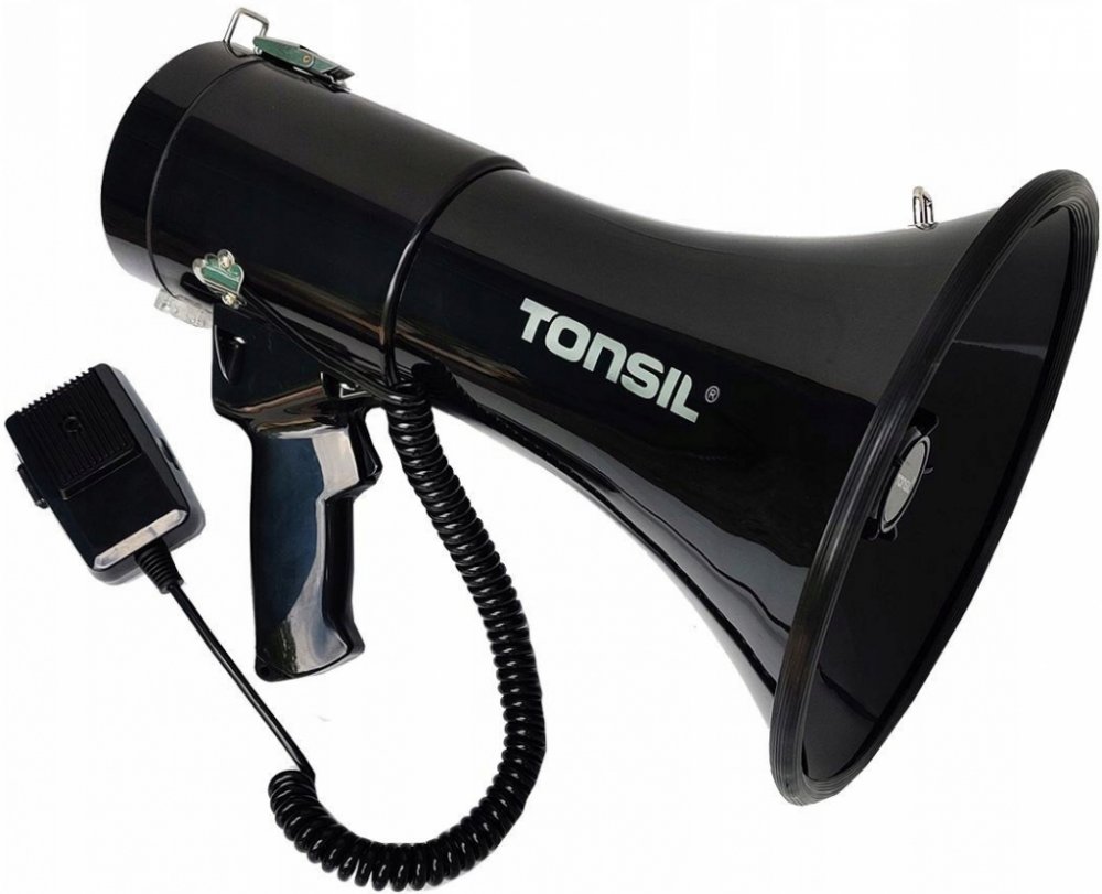 Megafon Tonsil má univerzální použití a je s oblibou vybírán pro manifesty, skupinová setkání, výlety, poutě, sportovní soutěže, společenských akcí akce, setkání fanoušků nebo ve velkých výrobních halách. Megafon lze napájet pomocí 8 baterií R14 nebo pomocí akumulátor (k dispozici na našich dalších aukcích)