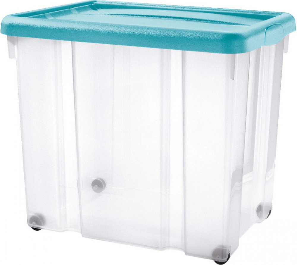 Úložný box s kolečky PUZZLE 80 l transp/modrá