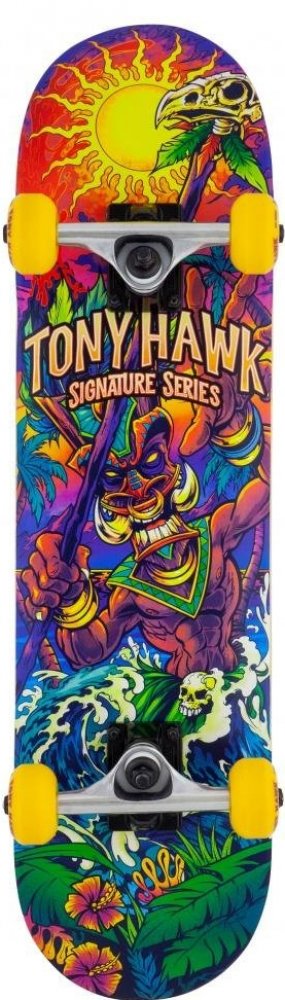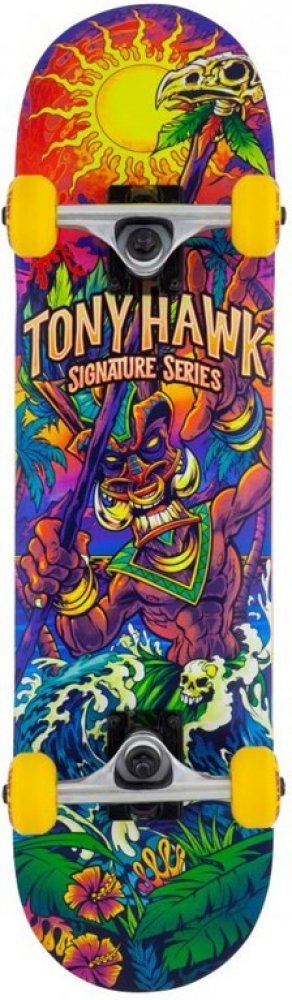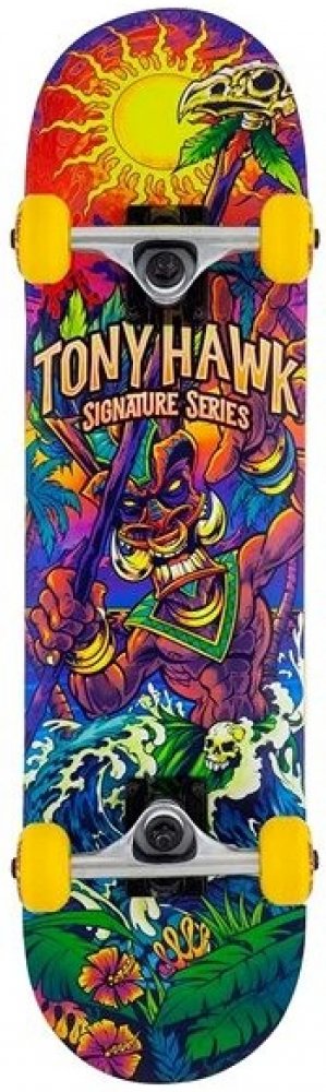 Signature edice skateboardů od Tonyho Hawka. Skateboard SS 360 určený pro začínající a středně pokročilé jezdce. Šířka desky 7,5" je vhodnější pro běžné ježdění a triky, osazená odolnými trucky z lakovaného hliníku. Kolečka jsou osazena rychlými ložisky pro hladkou jízdu a triky. Odolná 7mi vrstvá deska nese originální design Tonyho Hawka a na vrchní straně je osazena protiskluzovým gripem OS780.