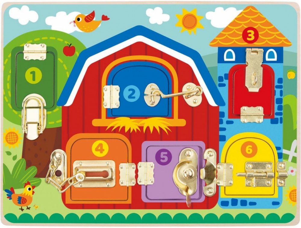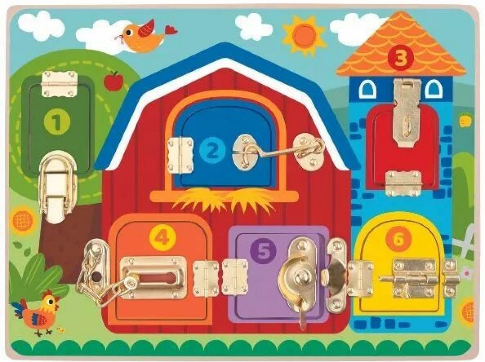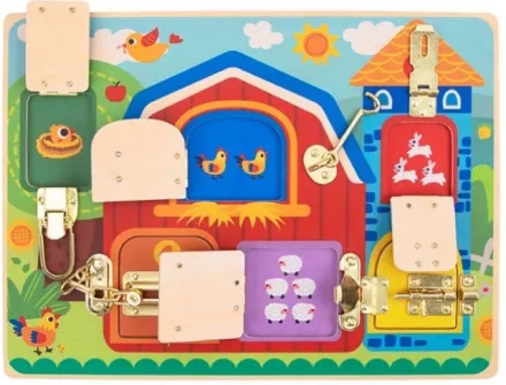 Zaujměte své dítě na celé hodiny s Dřevěnou hrací deskou Farma. Tato interaktivní a edukativní deska je vyrobena ze dřeva a nabízí 6 zámkových mechanismů, které fascinují každé dítě. Podporuje jemnou motoriku a logické myšlení. Zábavný a vzdělávací způsob rozvoje zručnosti. Veselý design domečku zahrnuje okna, dveře a farmářská zvířátka.