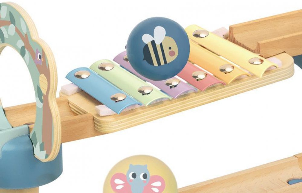 Kuličková dráha Strom Pastel 44 ks Stavebnice má také xylofon Dřevěná kuličková dráha s tobogánem v podobě stromu a funkčním xylofonem od Tooky Toy děti zcela pohltí! Stavebnice v pastelových barvách obsahuje 44 dílků a zábavných prvků, díky kterým si děti každý den postaví jinou kuličkovou dráhu. Kulička tak sjede po tobogánu v podobě stromu, zahraje na xylofon, přejde pod oblouky, přeskáče přes ...