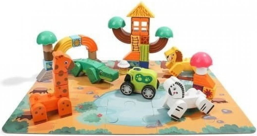 Dřevěné kostky Stavební kostky Puzzle Classic Jigsaw Dřevěné puzzle Safari 82 prvků Top BrightVlastnosti produktu:- Dřevěné skládačky s motivem Safari Safari, které se skládají z několika dílků, které jsou součástí balení:✔️ Věk: 18m+✔️ Počet prvků: 82✔️ Poznávání tvarů a barev✔️ ovlivňuje koordinaci oko-ruka V sadě dřevěných kostek a puzzle Safari děti doprovázejí ošetřovatele na jeho každodenní cestě po zoo. Nejprve si z kostek puzzle postaví park s jezírkem a keři. Poté skládají barevné dřevěné kostky dohromady, aby vytvořily terénní vozidlo, různé budovy a roztomilá zvířátka. Krásné detaily, jako jsou barevné květiny nebo oblouk, podporují úspěšnou hru. Hravé stavění budov také trénuje motoriku a prostorové myšlení. Dřevěné stavebnice divokých zvířat s puzzle safari, vhodné pro děti od 18 měsíců. Vyrobeno z vysoce kvalitního dřeva Obsahuje různé stavební bloky s divokými zvířaty včetně safari puzzle Vhodné pro děti od 18 měsíců věku Popis