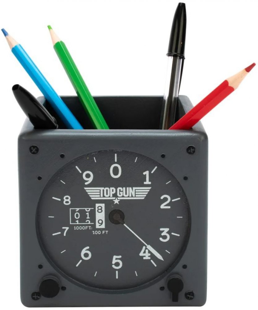 Vyrobeno z keramiky s detaily Latitude Meter (Měřič zeměpisné šířky) z filmu Top Gun pro znovuvytvoření ikonického filmu. Stojánek pro všechny menší i větší fanoušky Top Gun, kteří chtějí své propisky mít organizovaně uložené ve stylu.