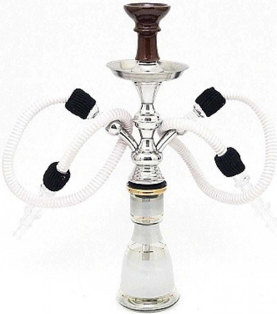Tradiční egyptská vodní dýmka od výrobce Top Mark v bílém provedení je určena pro dva kuřáky. Vodní dýmka je vysoká 46 cm včetně korunky. Barevné provedení určuje barva hadice a vázy. Vodní dýmka je zabalena v originální krabici z lepenky spolu s veškerým příslušenstvím, které je zahrnuto v ceně dýmky.