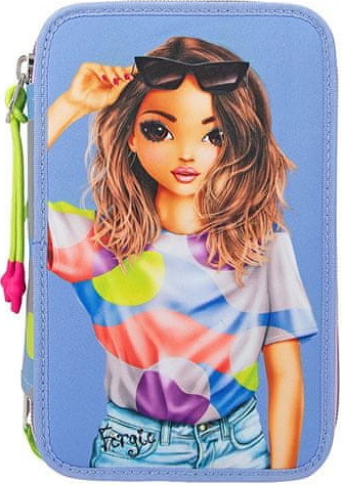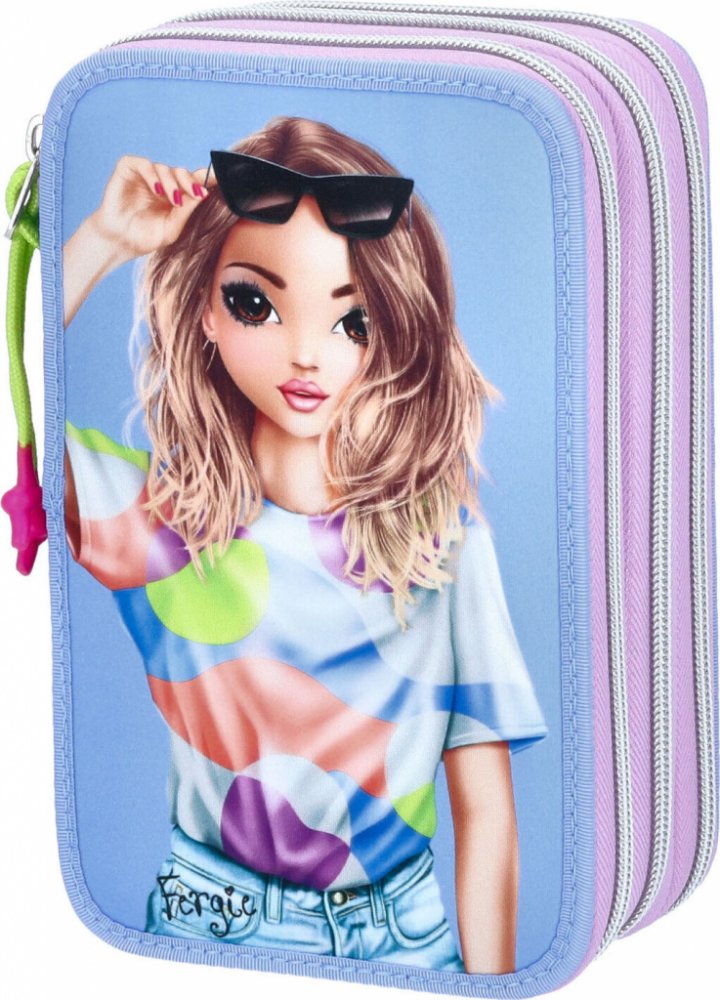 Jasné a chladné: Na přední straně ve fialové barvě je velký motiv modelu a na boční a zadní straně je módní grafický vzor z reflexního materiálu. Má neonově zbarvené zipy a tři oddělené přihrádky, z nichž každá je zcela zaplněna 18 barevnými a plstěnými pery, 2 tužkami, ořezávátkem, gumou, pravítkem, nůžkami a lepicí tyčinkou.Adresa výrobce: Depesche Vertrieb GmbH & Co KG Vierländer Straße 14 21502 Geesthacht Německo E-mail:info@depesche.com Internetové stránky:+49 4152 9360 TOPModel 3 přihrádkový penál FLASH
