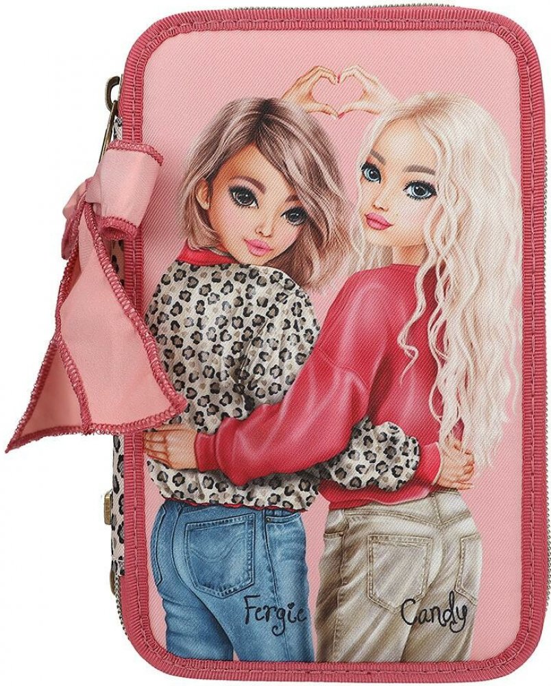 Třípatrový penál s výbavou Top Model z kolekce Leoheart je stylový školní penál v růžovém provedení, který zaujme velkým motivem dvou modelek na přední straně a leopardím vzorem na bocích a zadní části. Originálním doplňkem je velká růžová mašle připevněná na zipu. Penál má tři samostatné přihrádky, které jsou kompletně naplněny – najdete v nich 18 pastelek a fixů, 2 tužky, pravítko, gumu, ořezávátko, nůžky, lepicí tyčinku a malou kapsičku na suchý zip. Hlavní materiál tvoří 100% polyester. Rozměry penálu jsou 7,5 × 13 × 20 cm, hmotnost 0,603 kg.Doporučený věk je od 6 let.