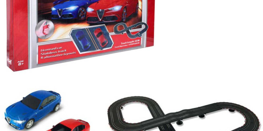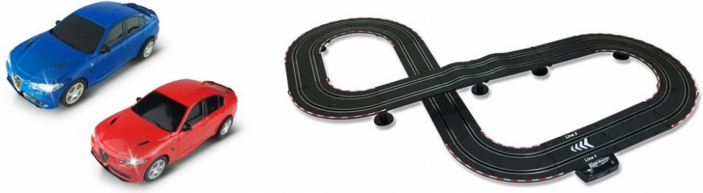 S touto autodráhou tě čeká opravdu zběsilá honička! Kdo bude rychlejší? Zloději v ukradeném sporťáku nebo policejní speciál, který je pronásleduje? Autodráha se dvěma autíčky v licenci Alfa Romeo. Napájení
