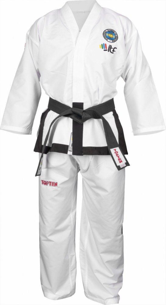 Nová Uniforma (Dobok) Diamond Velmi lehká a vzdušná uniforma vyrobená z materiálu Diamond. Horní díl je s černým lemem. Na horním dílu je vepředu umístěn znak ITF a logo Top Ten a na zádech je vyšit tzv. Strom života. Kalhoty mají gumový-elastický pás, který je ukončen šňůrkou na zavazování. Tento typ je dodáván bez pásku – OBI. Dobok je určen pro nositele 1.-3. danu. - Cool Mesh prvky pro dokonal...