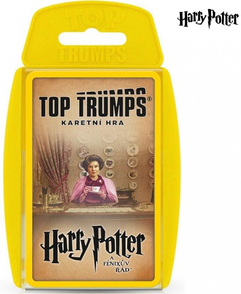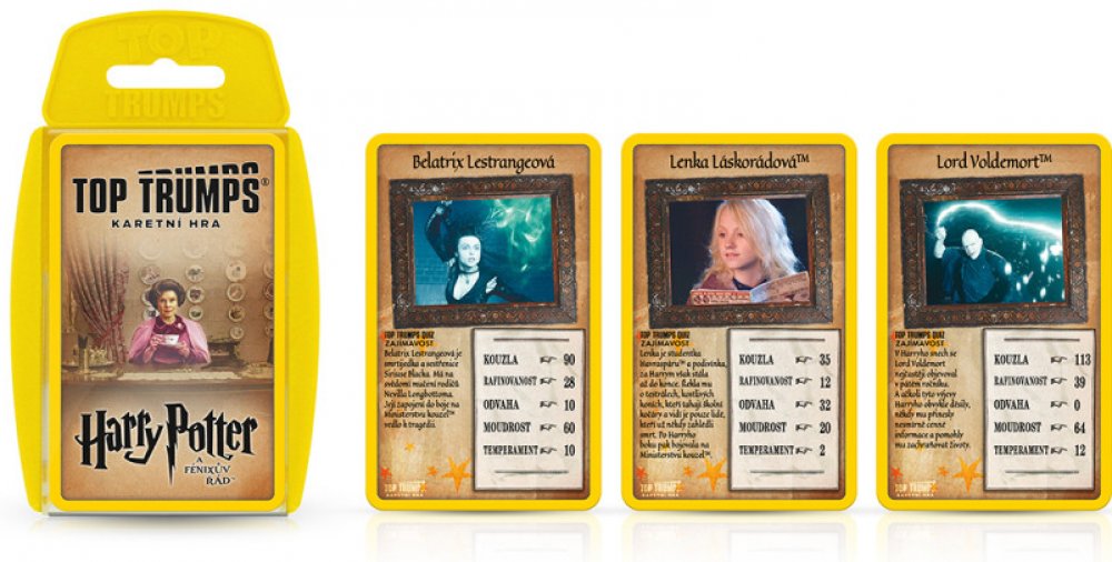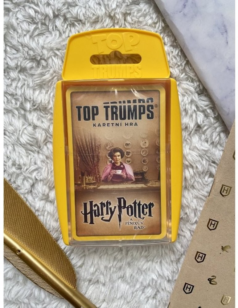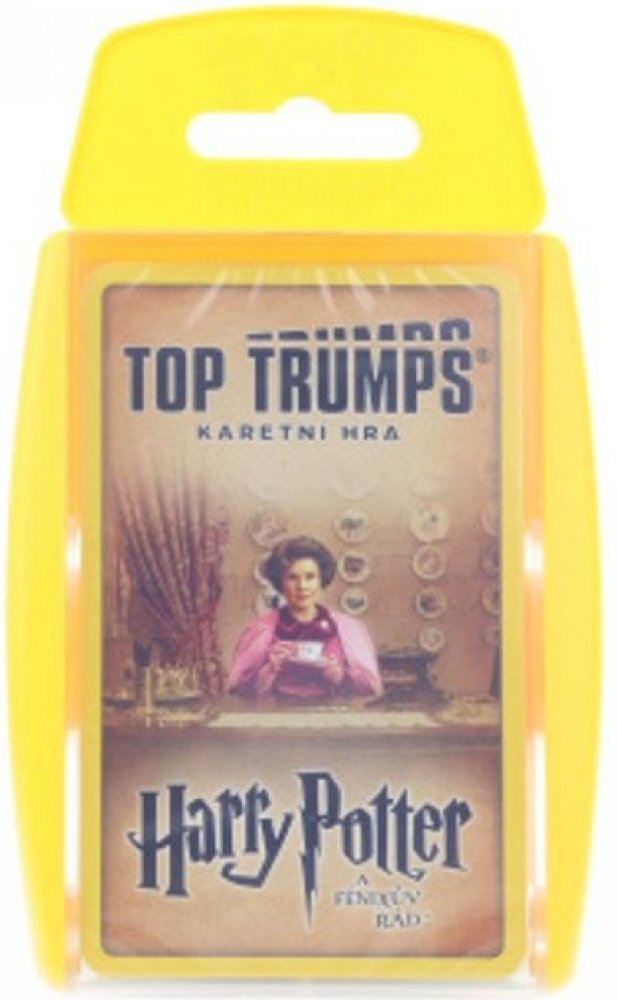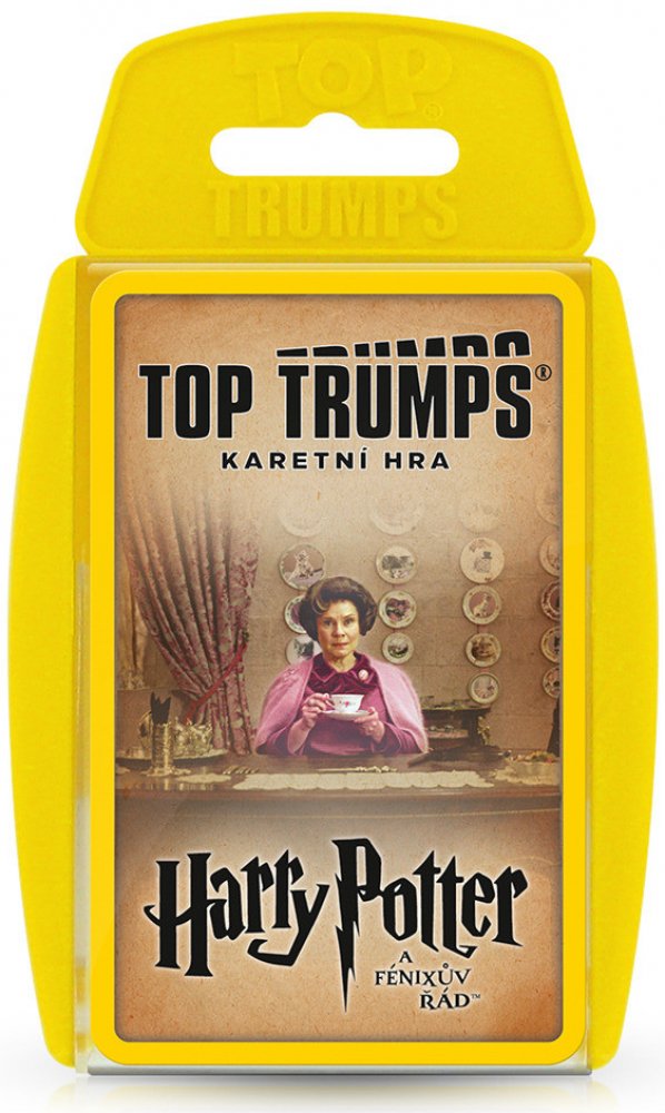 Perfektní karetní hra pro každého fanouška Harryho Pottera. Otestujte si, jak dobře znáte filmové postavy. Nebo se o nich možná dozvíte něco nového? Hru může hrát libovolný počet lidí, ale ne méně než dva. Top Trumps má mnoho verzí a je často kombinován s populárními licencemi. Tato edice obsahuje postavy z filmu Harry Potter a Fénixův řád. Harry, Ron a Hermiona začínají pátý rok v Bradavicích a čelí své nejdrsnější učitelce, profesorce Umbridgeové. Dozvědí se také o obranné lize založené pro boj s Voldemortem – Fénixův řád. Kdo se ukáže jako nejstatečnější? Kdo předvede více mazanosti – Bellatrix Lestrangeová nebo Lucius Malfoy? Chcete-li to zjistit, hrajte Top Trumps Harry Potter a Fénixův řád. V balíčku najdete také Smrtijedy. Zamíchejte balíček karet a rozdejte je všem hráčům, kteří je pak musí držet lícem nahoru. Vezměte první kartu z horní části balíčku, otočte ji a vyberte si jeden z atributů. Zbytek hráčů také otočí první kartu ze svých hromádek a uvede jim hodnoty přiřazené k atributu, který jste si na začátku vybrali. Pokud máte nejvyšší počet bodů, vyhrajete svůj tah a vezmete karty svých soupeřů tak, že je umístíte na konec své hromádky. Stáváte se vítězem, pokud získáte všechny karty svých soupeřů! 33 karet v plastové krabičce.