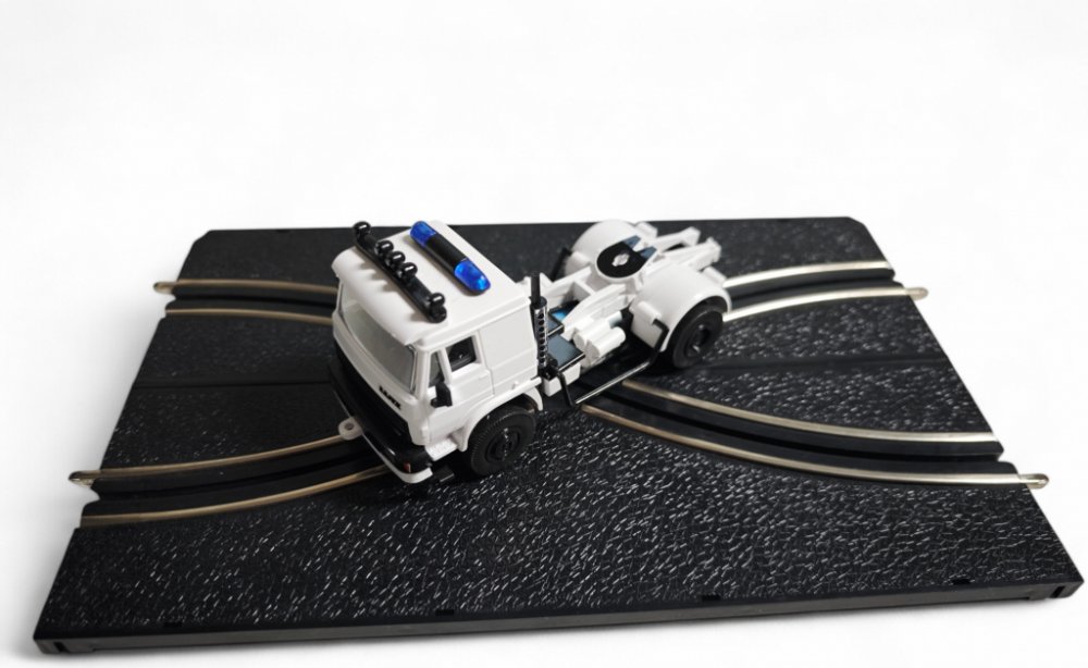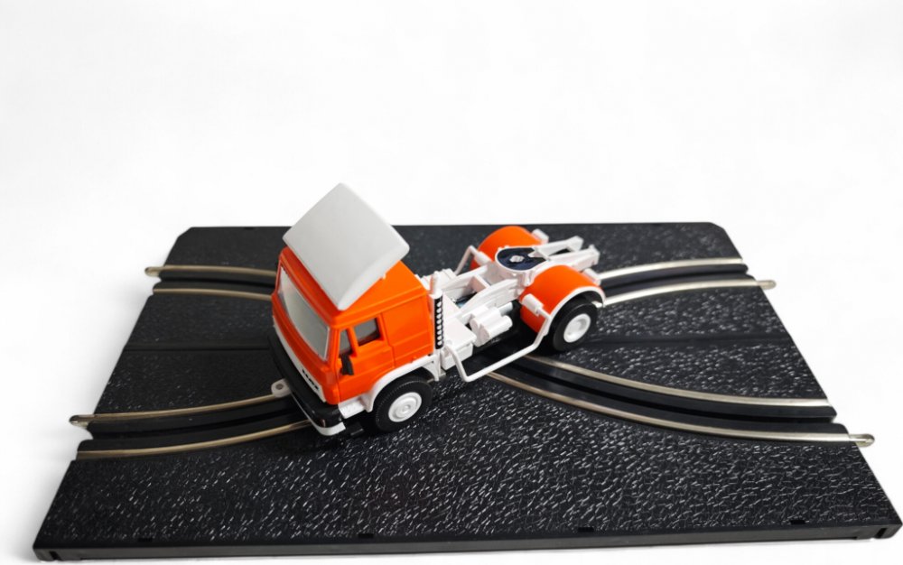 KAMION JE VHODNÝ PRO SVÉ UNIVERZÁLNÍ VODÍTKO NA BĚŽNÉ AUTODRÁHY PRO AUTA 1.32 S NAPĚTÍM 12-14V JAKO JSOU NAPŘÍKLAD ITES, GONIO, FARO, CARRERA EVOLUTION, NIMCO, SCALETRIX, SCX, ATD ( NEPASUJE NA CARRERA GO A PODOBNÉ ,NEVEJDE SE VE VNITŘNÍCH ZATÁČKÁCH, ALE ŘEŠÍME NĚJAKÉ ROZŠÍŘENÍ, ABY SE I ZDE DALI POUŽÍT ).