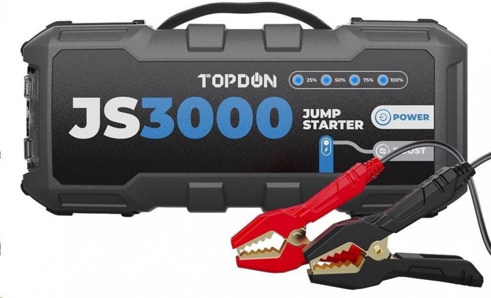CAR JUMP STARTER JUMPSURGE 3000 Maximálně spolehlivý a výkonný car jump startér JumpSurge 3000 s kapacitou 24000mAh (88.8Wh) a startovacím proudem až 3000A.Ideální zařízení, které kombinuje výkonný a moderní startovací zdroj pro Vaše vozidla, lodě, motocykly, skútry atd. S úžasným výkonem 3000A nastartuje Váš dopravní prostředek při vybité baterii až do maximálního objemu 7.0L pro naftový motor a 9.0L pro benzínový motor a to opakovaně v závislosti na objemu Vašeho motoru. Tento car jump startér můžete používat pro pohotovostní starty nejen vozidel, ale i motocyklů, skútrů, lodí, čtyřkolek, sněžných skútrů, karavanů, osobních i nákladních vozidel s 12V okruhem, atd. Celkem 6 elektronických ochran zajistí bezpečnost Vašeho přístroje, startovacího zdroje JumpSurge 3000, i Vašeho vozidla. Vše na základě předpisů CE a EU. Buďte v bezpečí. Díky kapacitě 24000mAh a podpoře rychlonabíjení QC3.0 jej můžete využít i pro rychlé nabíjení jakékoliv drobné elektroniky.Dále JumpSurge 3000 podporuje nabíjení jakéhokoliv zařízení pomocí konektoru typu Jack s maximálním výkonem 16.8V/10A max.Nabíjet startovací zdroj JumpSurge 3000 můžete pomocí konektoru USB-C (5V/3A, 9V/3A, 12V/3A, 15V/3A, 20V/2.25A)Výkonné LED světlo s funkcí SOS se Vám bude hodit při stanování, kempování, rybaření, nebo jako výstražná SOS svítilna. Přednosti: Výstupní proud až 3000A Kvalitní Li-ion baterie s kapacitou 24000mAh Podpora rychlonabíjení standardem QC3.0 Výkonné LED světlo se třemi módy (stálé, SOS, stroboskop) Pevné a odolné startovací klipy s ochranou proti přepólování Start vozidel max 7.0L pro dieselové motory, max 9.0L pro benzínové motory Podpora rychlého nabíjení přes USB (5V/3A, 9V/2A, 12V/1.5A) Celkem 6 bezpečnostních ochran (Ochrana proti zkratu, přepětí, obrácené polaritě atd.) Vysoký rozsah pracovních teplot od -20°C do +60°C Ochrana IP64! (platí pouze v případě, že jsou všechny vstupní i výstupní konektory zakryté např. silikonovým ochranným krytem) Bohaté příslušenství Maximální bezpečnost produktu. Technické specifikace: Model: JumpSurge 3000 Baterie Kapacita 88.8Wh/24000mAh Napětí baterie 3.7V Typ Li-ion Vstupy USB-C (PD) 5V/3A,9V/3A,12V/3A,15V/3A, 45W max. Výstupy Jack 16.8V/10A max. USB-C (PD) 5V/3A,9V/3A,12V/3A,15V/3A, 20V/2.25A 45W max. USB-A (QC) 5V/3A, 9V/2A, 12V/1.5A, 18W max. USB-A 5V/2A Car Jump Start/ Startovací vstup 3000A Doplňující specifikace: Maximální objem motoru pro start max. 7L pro dieslové motory, max. 9L pro benzínové motory Rozměry produktu 260x115x55mm Rozměry balení 285x150x120mm Hmotnost 1.27 kg Materiál Tvrzené PVC IP ochrana IP64 (platí pouze v případě, že jsou všechny vstupní i výstupní konektory zakryté např. silikonovým ochranným krytem) Příslušenství Ochranné pouzdro, start.kabely,adaptér, nabíjecí kabel USB-C Certifikace CEFS, UKCA, ROHS Pracovní teplota -20°C - +60°C Skladovací teplota -20°C - +75C° Ochrany Ochrana proti zkratu, přepětí, obrácené polaritě, vysoké a nízké teplotě článků, přebíjení, atd. Další LED světlo .