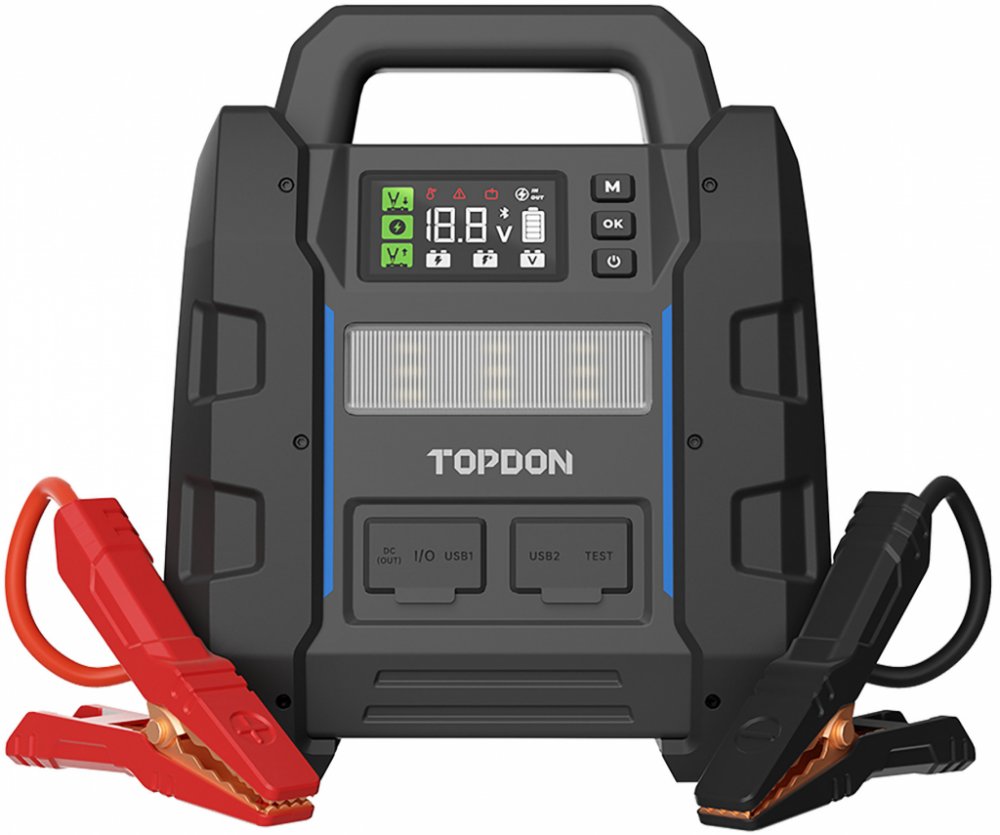 Jump startér V4500 Plus je nabitý funkcemi, jejichž cílem je zlepšit váš zážitek z jízdy. Díky možnosti testovat baterii a sledovat její stav prostřednictvím aplikace (TOPDON BatteryLab) můžete zůstat mobilní a předcházet nečekaným poruchám. Navíc díky svým rychlým nabíjecím schopnostem dokáže dobít váš smartphone za pouhých 25 minut.