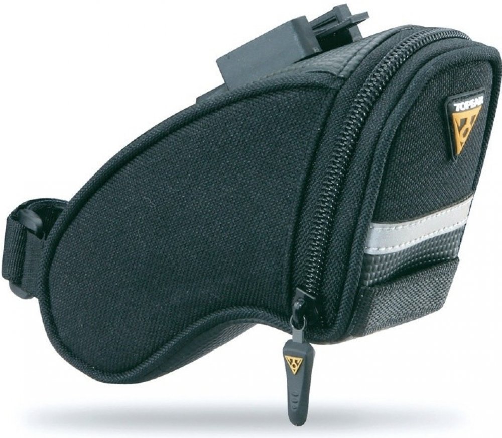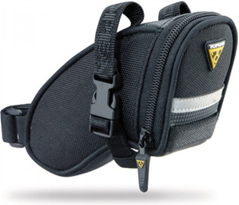 Aerodynamická podsedlová taška, vhodná pro přepravu duše, nářadí a jiného příslušenství na opravu kola. Vlastnosti: Klasická fixace pomocí popruhu s nylonovou přezkou. Materiál: 1200 Denier Polyester s ochranou Dupont Teflon. Dodatečný 3M reflexní pásek pro lepší viditelnost ve tmě. Možnost uchycení zadní blikačky. Objem: 0,41 litru. Rozměry: 16x8x7,5 cm. Hmotnost: 85 g.