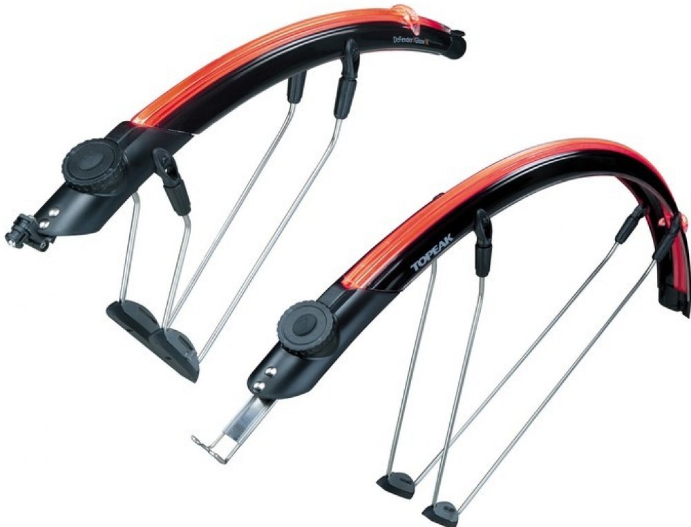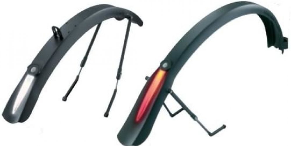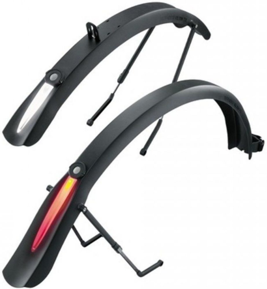 Set trekingových blatníků s integrovaným osvětlením iGlow. Nastavitelné hliníkové vzpěry s QR páčkami pro rychlé a precizní nastavení blatníku nad pláštěm. Vysoce odolný plast má leštěnou spodní stranu pro co nejnižší ulpívání nečistot na blastníku. Blastníky pasují pro pláště až do rozměru 700 x 44c.