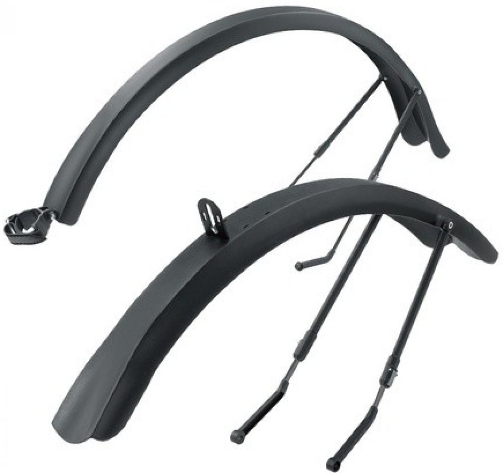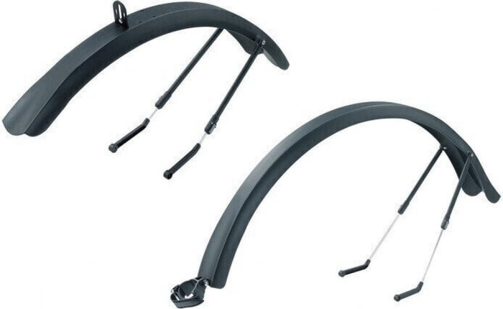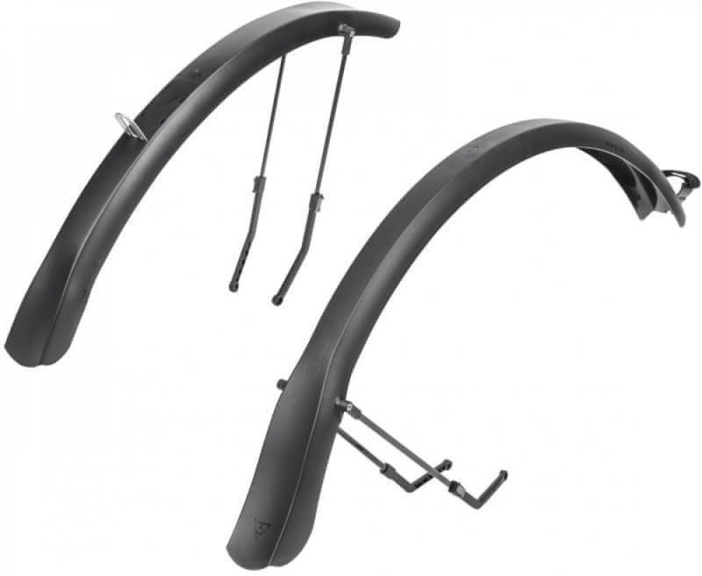 Decentní trekingové blatníky v setu předního a zadního blatníku. Nastavitelné hliníkové vzpěry s QR páčkami pro rychlé a precizní nastavení blatníku nad pláštěm. Vysoce odolný plast má leštěnou spodní stranu pro co nejnižší ulpívání nečistot na blastníku. Blastníky pasují pro pláště až do rozměru 700 x 44c.