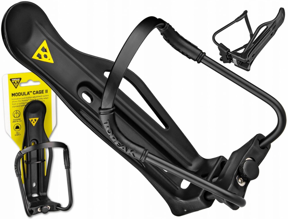 Jestli se vám někdy stalo, že jste si chtěli vzít na kolo láhev s pitím a nevešla se do běžného košíku, tak problém jednoduše vyřešíte pomocí košíku na lahev Topeak Modula Cage II. Košík má posuvné rameno, které se snadno přizpůsobí rozměru vaší láhve. Kromě běžných sportovních lahví na kola zvládne i rozměry běžné balené vody.