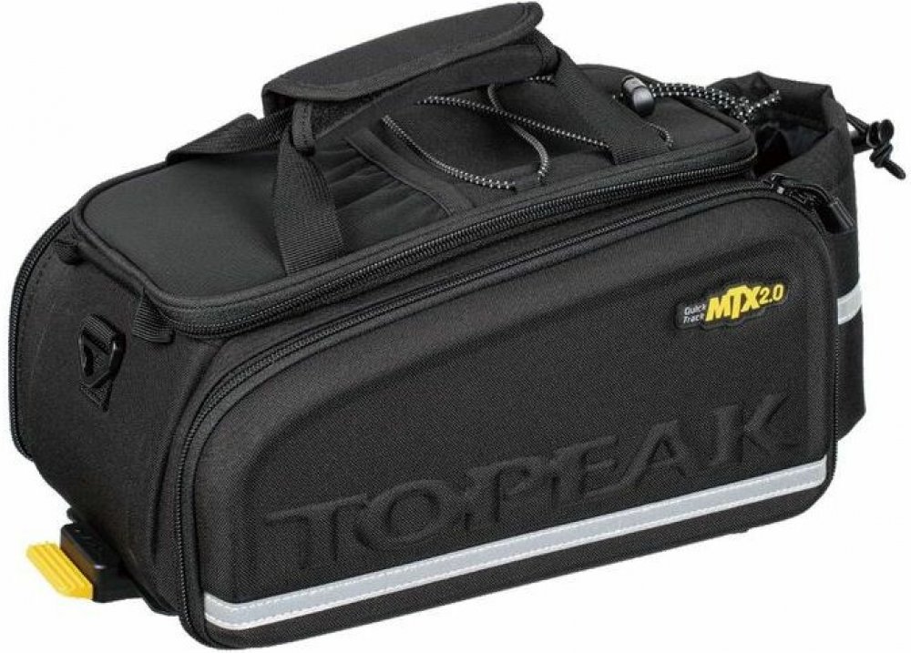 Novější vylepšená verze oblíbeného cyklistického zavazadla s velkou kapacitou pro nosiče série MTX QuickTrack 2.0 system s bočnicemi. Vylepšení spočívá v nové upínací platformě MTX QuickTrack 2.0 system (používaná na nosičích Topeak série TUBULAR, UNI, TETRA RACK), uhlazenějším vnějším designu, reflexních prvcích na napínacím laně a elastické síťovinové kapse na vrchní straně batohu.