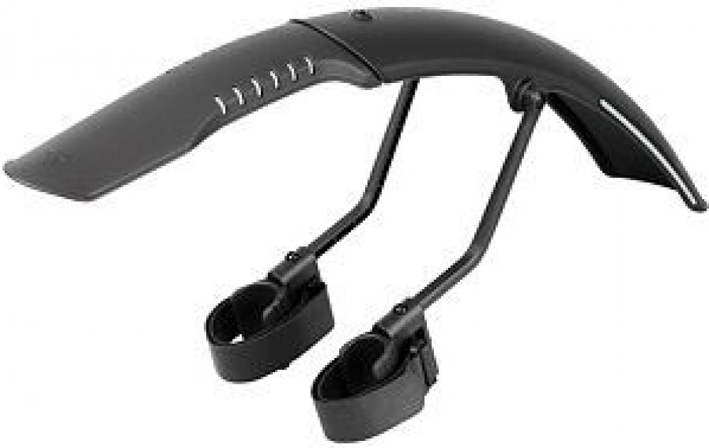 Přední dvoubarevný blatník s rychlou, bezpečnou a jednoduchou montáží. Nastavitelné vzpěry zajišťují těsnější přilnutí k pneumatice a vynikající ochranu před blátem, zatímco vysoce leštěná spodní strana pomáhá předcházet usazování nečistot a usnadňuje čištění. Přiložené reflexní nálepky 3M zajišťují bezpečnost v noci.