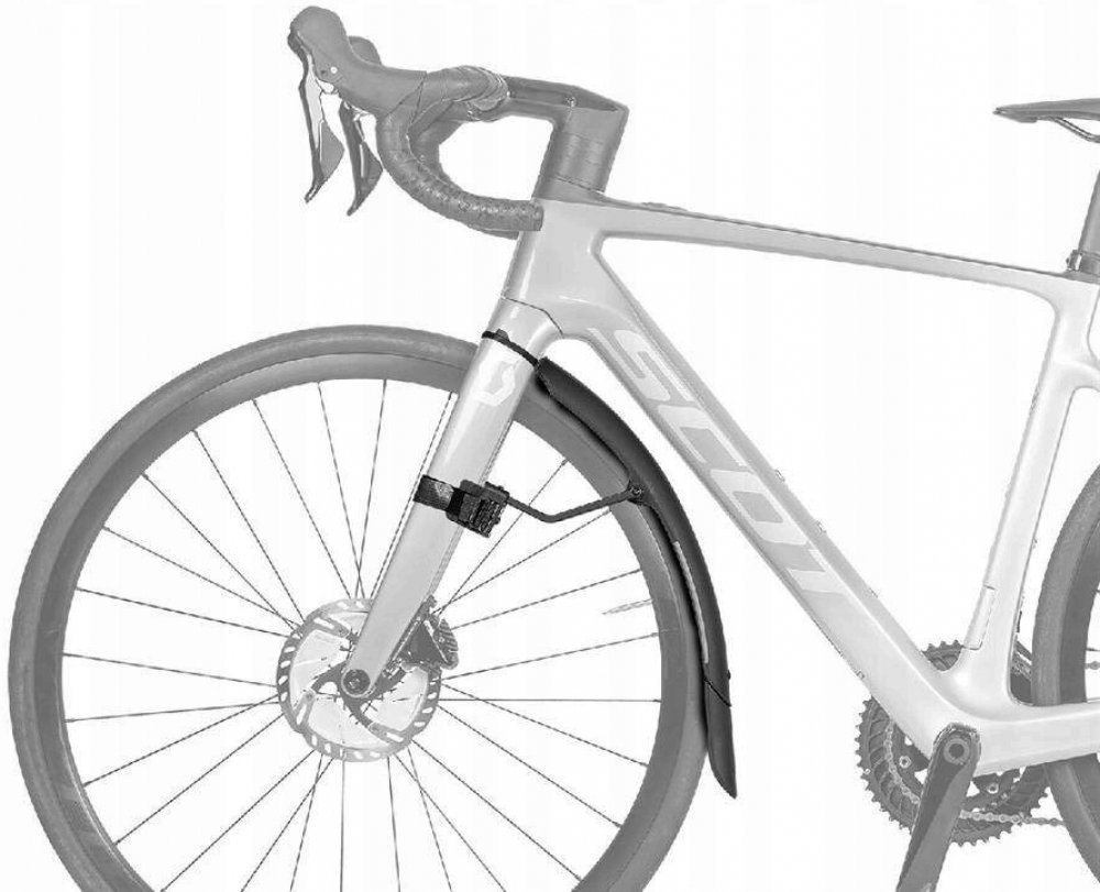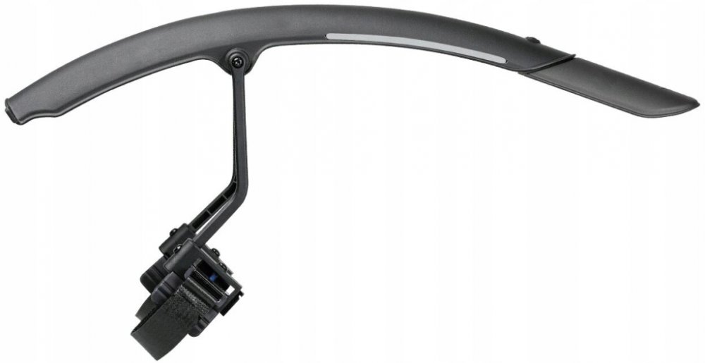 Přední dvoubarevný blatník s rychlou, bezpečnou a jednoduchou montáží. Nastavitelné vzpěry zajišťují těsnější přilnutí k pneumatice a vynikající ochranu před blátem, zatímco vysoce leštěná spodní strana pomáhá předcházet usazování nečistot a usnadňuje čištění. Přiložené reflexní nálepky 3M zajišťují bezpečnost v noci.