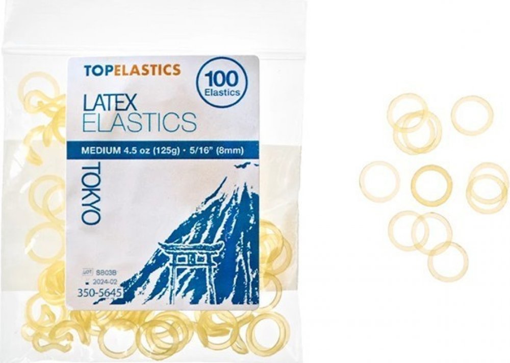Orto gumičky - elastické tahy, medium.TopElastics TOKYO ortodontické gumičky, 5/16" mediumOrtodontické gumičky/ elastické tahy z chirurgického latexu nejvyšší kvality, medium, vel. 5/16" (8 mm), 100 ks v balení.