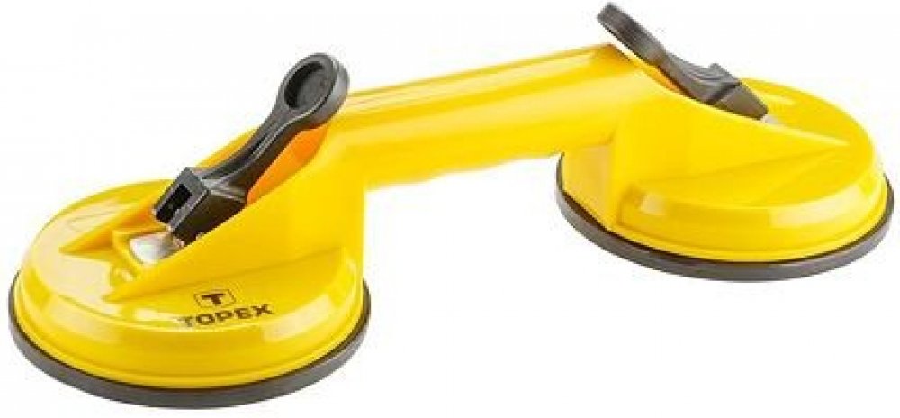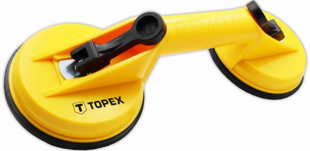 Přísavka na sklo TOPEX (č. ref. 14A780) používá pro přepravu a montáž skla a kovových nebo plastových desek. Pouzdro je vyrobeno z vysoce kvalitního plastu. Dvě gumové přísavky o průměru 12 cm každá poskytují vysokou úroveň pohodlí a bezpečnosti při používání s maximální nosností 80 kg.