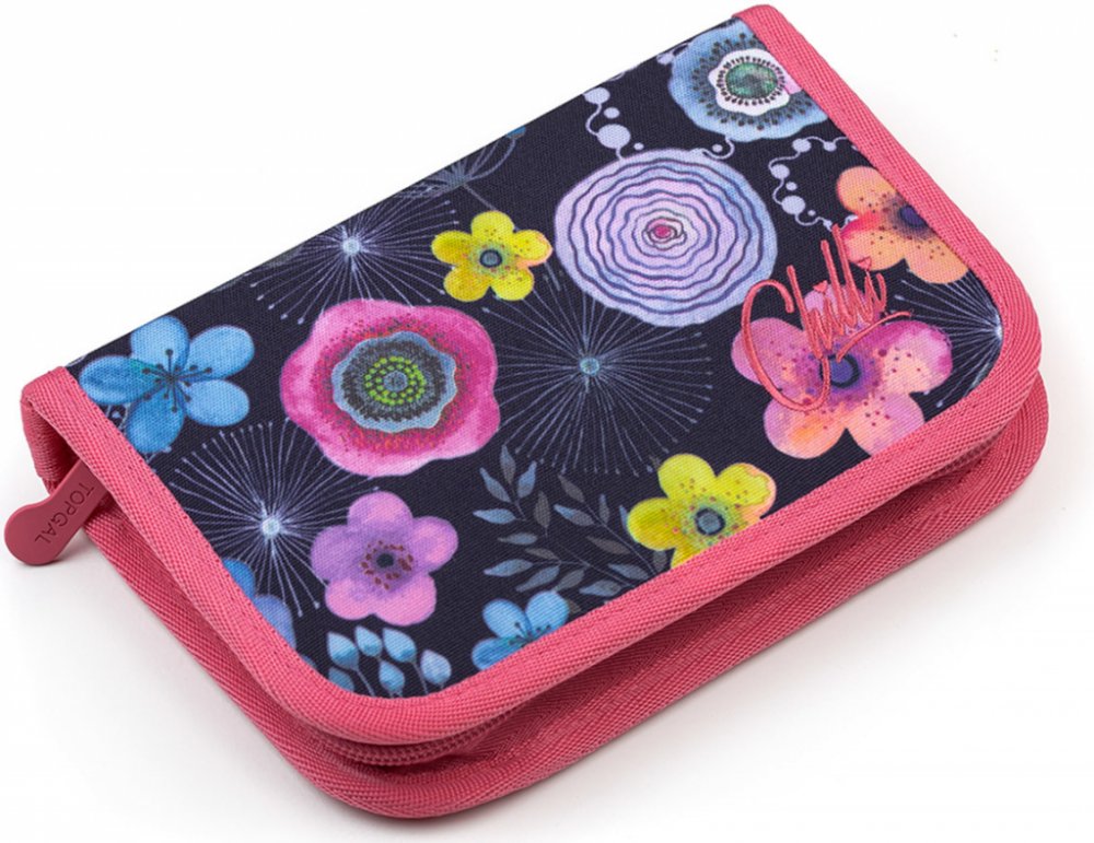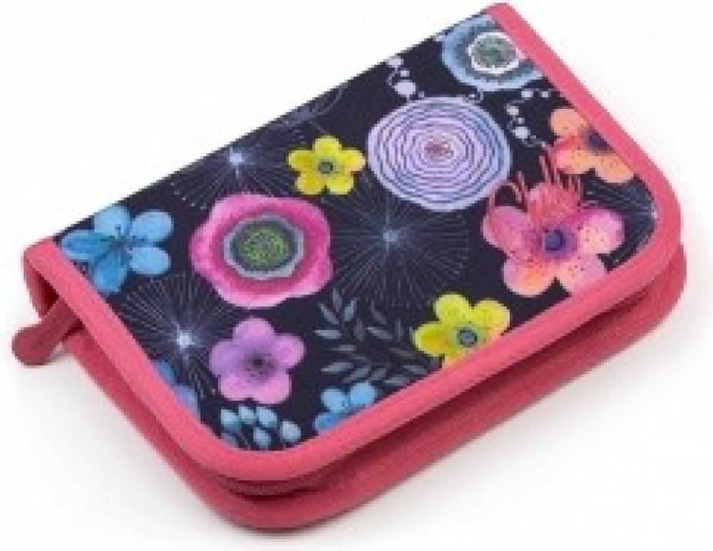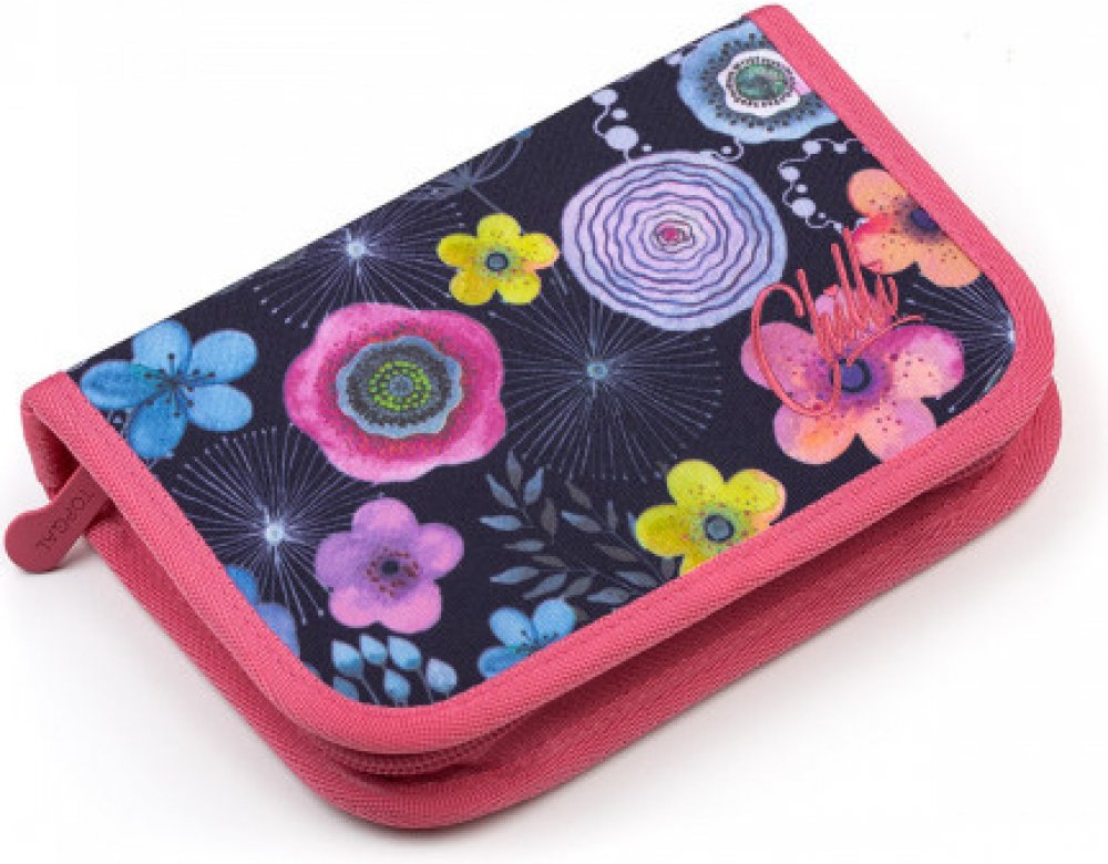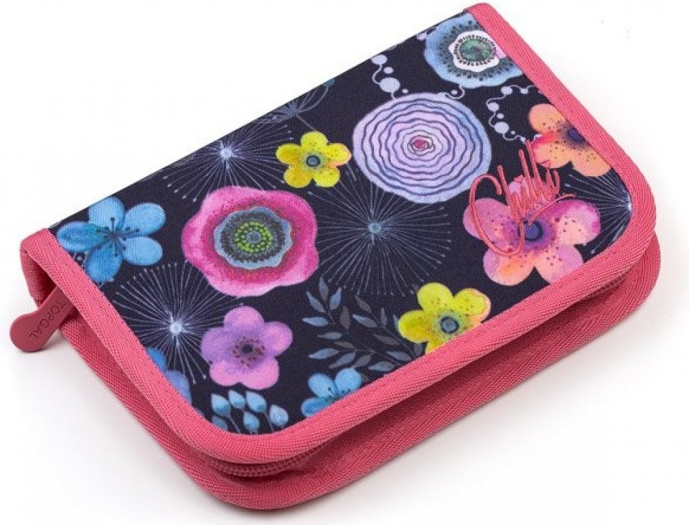 Jednopatrové školní pouzdro je vybaveno osmnácti klasickými gumovými úchyty na pastelky a fixy, čtyřmi širšími úchyty na pravítka, kružítko či nůžky a dvěma většími úchyty na gumu a ořezávátko. Pod klopnou z průhledné folie najdete rozvrh hodin, ale třeba poslouží i na taháky :-)