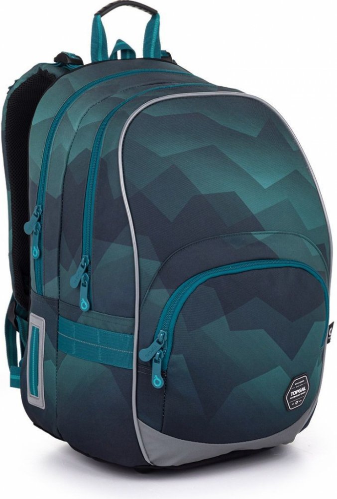 Dvoukomorový batoh v odstínech zelené a modré dobře padne klukům od 125 cm. Dominantou jsou v tomto případě petrolejově modré zipy. Zadní komora je nejobjemnější, proto se do ní vejde všechno těžké učení. Přední komora je malinko menší a skrývá síťovou kapsu na doklady i jmenovku. Do malé přední kapsy se vejde penál ve stejném designu nebo krabička se svačinou.