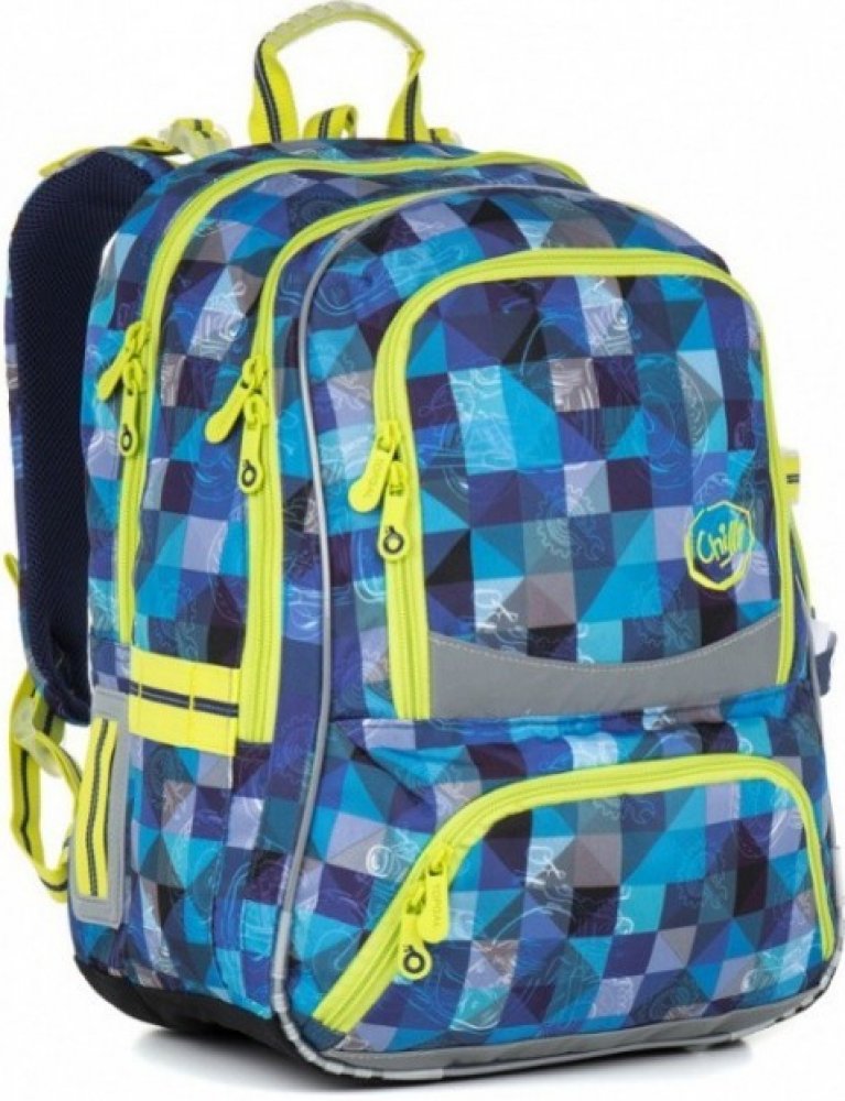 Jeden z objemnějších modelů batohů je určen pro školáky od druhé třídy. Pro kluka motorkáře je díky svému designu jak stvořený. Zadní komora je užší, doporučujeme do ní umístit desky na sešity a vše težké. Přední komora je velice objemná a unese snad úplně vše. Navíc je v ní umístěna praktická síťová kapsa na zip a cedulka se jmenovkou.