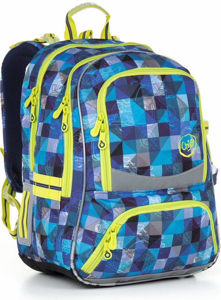 Modro zelená pestrá kombinace spolu s velkým množstvím reflexních prvků, zajistí dobrou viditelnost vašeho školáka i za zhoršených povětrnostních podmínek.
