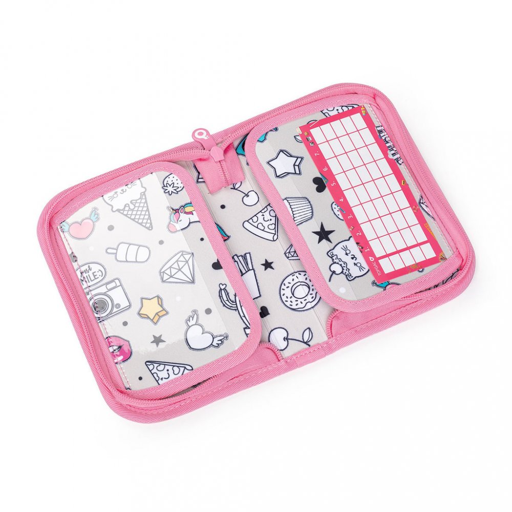 Kreslení povoleno! Vnitřní podšívka pouzdra je vyrobena z šedé látky s natištěnými obrázky. Ty si mohou děti vybarvit dle nálady a chuti. Naše malé doporučení - pro vybarvování budou lepší pastelky, fixy by se mohly rozpíjet.