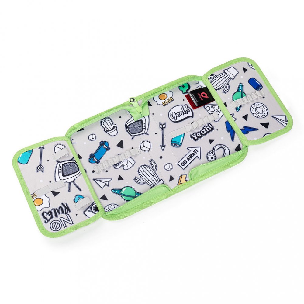 Kreslení povoleno! Vnitřní podšívka pouzdra je vyrobena z šedé látky s natištěnými obrázky. Ty si mohou děti vybarvit dle nálady a chuti. Naše malé doporučení - pro vybarvování budou lepší pastelky, fixy by se mohly rozpíjet.