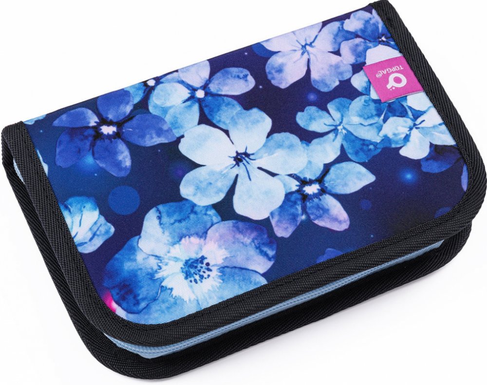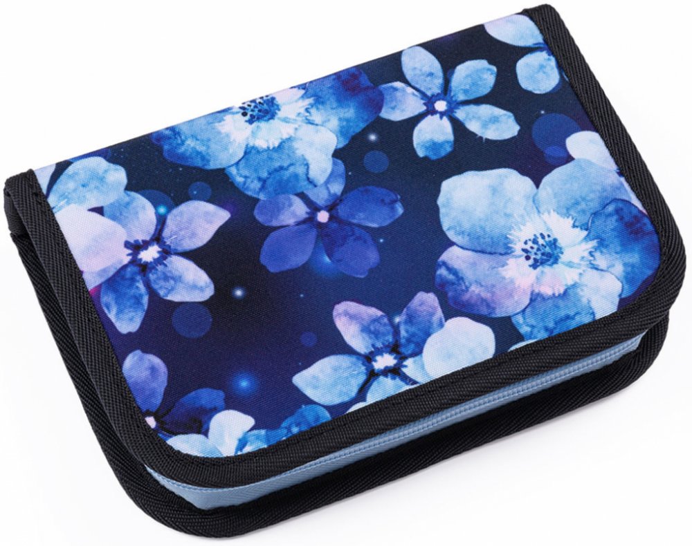 Jednopatrové školní pouzdro se dvěma klopami. Díky gumovým úchytům se do nich vejde celkem dvacetjedna pastelek, tužek a fixek. Tři širší úchyty poslouží na pravítko, kružítko či nůžky. Dva větší na gumu a ořezávátko.