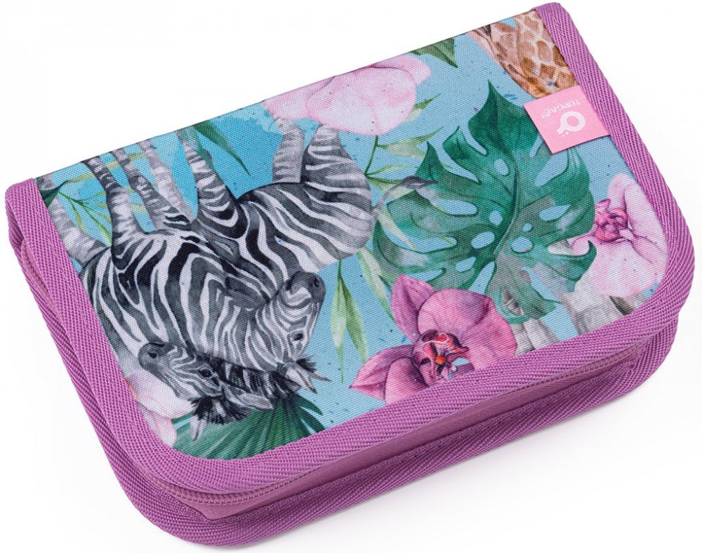 Jednopatrové školní pouzdro se dvěma klopami. Díky gumovým úchytům se do nich vejde celkem dvacetjedna pastelek, tužek a fixek. Tři širší úchyty poslouží na pravítko, kružítko či nůžky. Dva větší na gumu a ořezávátko.