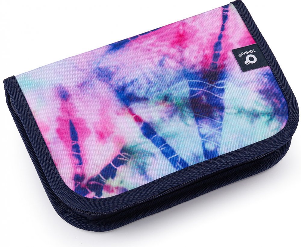 Jednopatrové školní pouzdro se dvěma klopami. Díky gumovým úchytům se do nich vejde celkem dvacetjedna pastelek, tužek a fixek. Tři širší úchyty poslouží na pravítko, kružítko či nůžky. Dva větší na gumu a ořezávátko.