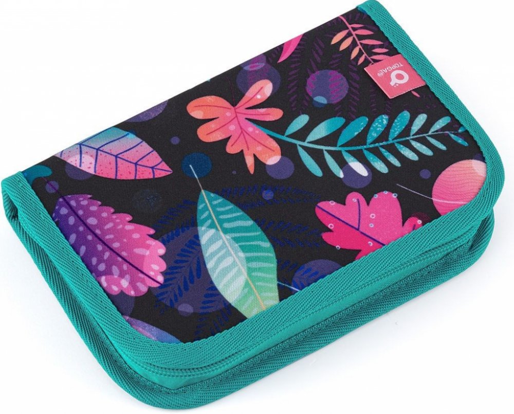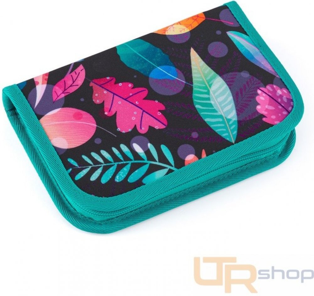 Jednopatrové školní pouzdro se dvěma klopami. Díky gumovým úchytům se do nich vejde celkem dvacetjedna pastelek, tužek a fixek. Tři širší úchyty poslouží na pravítko, kružítko či nůžky, zbylé dva na gumu a ořezávátko.