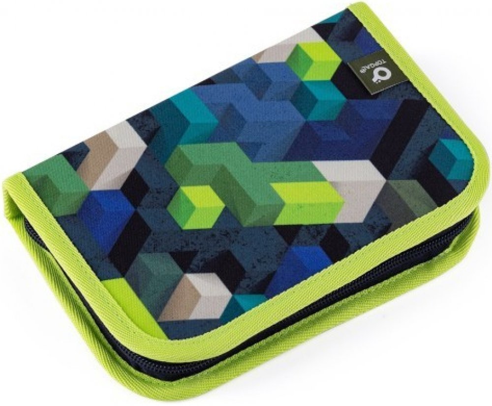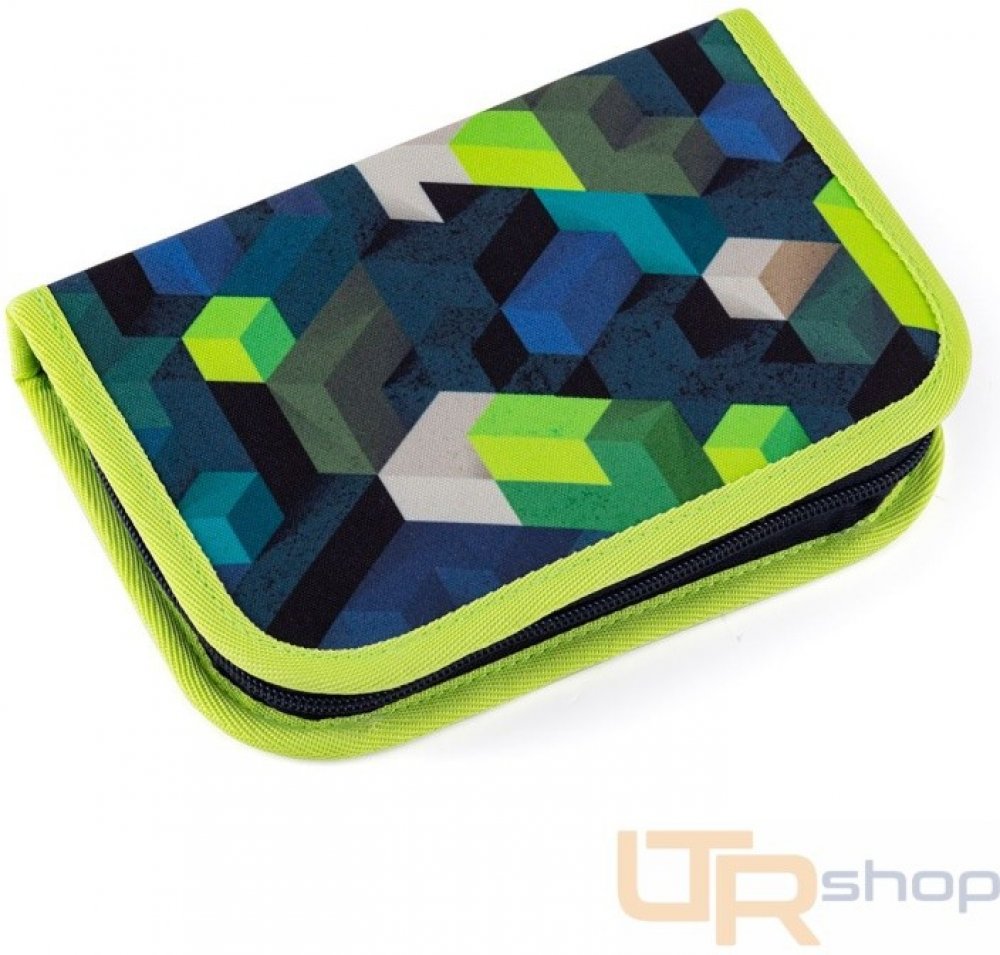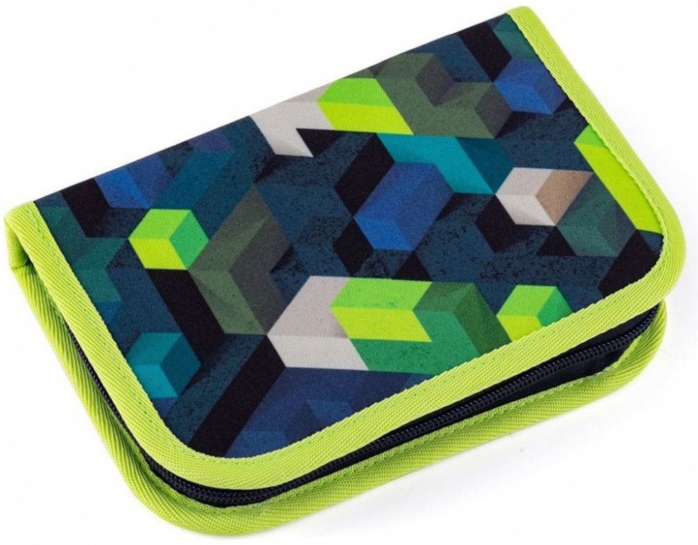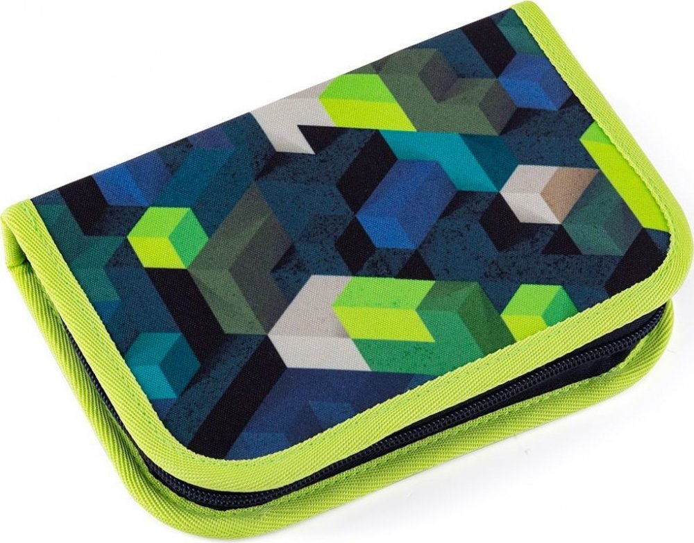 Jednopatrové školní pouzdro se dvěma klopami. Díky gumovým úchytům se do nich vejde celkem dvacetjedna pastelek, tužek a fixek. Tři širší úchyty poslouží na pravítko, kružítko či nůžky, zbylé dva na gumu a ořezávátko.
