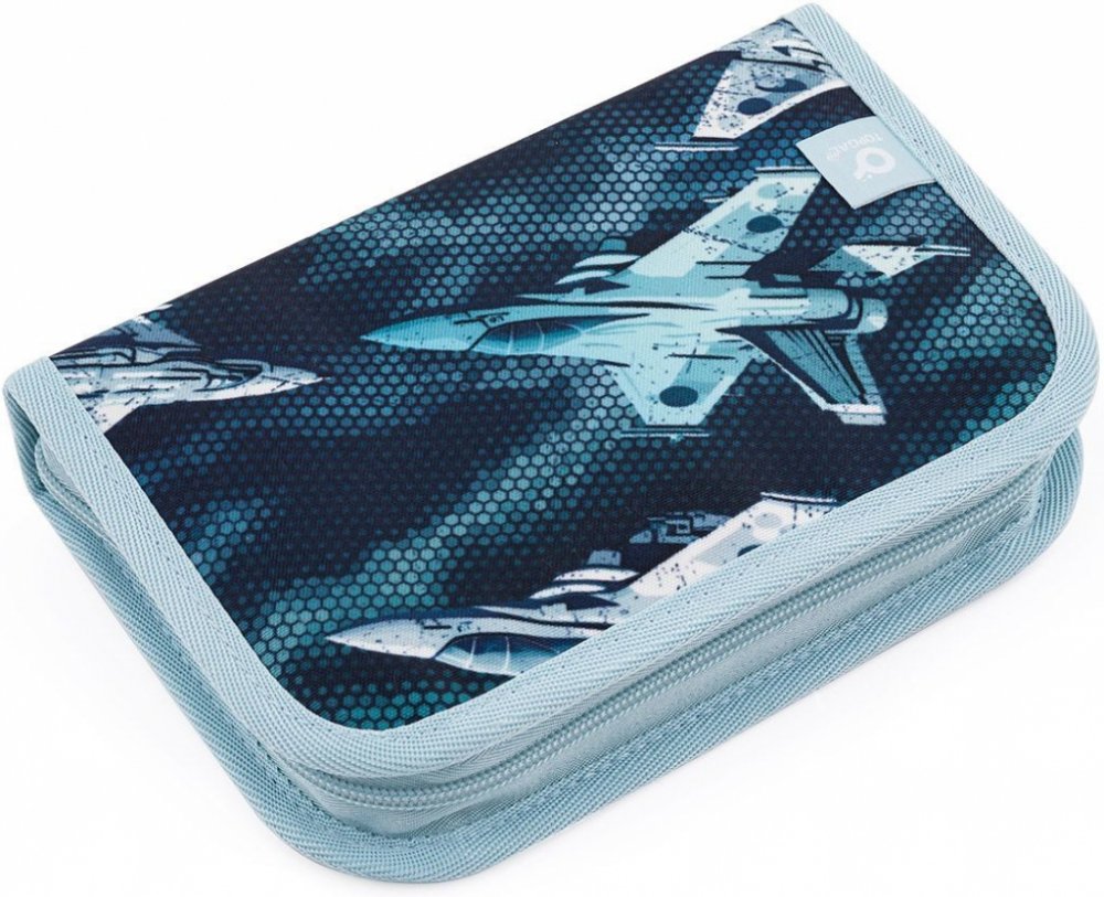 Jednopatrové školní pouzdro se dvěma klopami. Díky gumovým úchytům se do nich vejde celkem dvacetjedna pastelek, tužek a fixek. Tři širší úchyty poslouží na pravítko, kružítko či nůžky. Dva větší na gumu a ořezávátko.