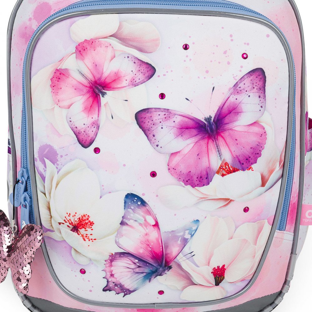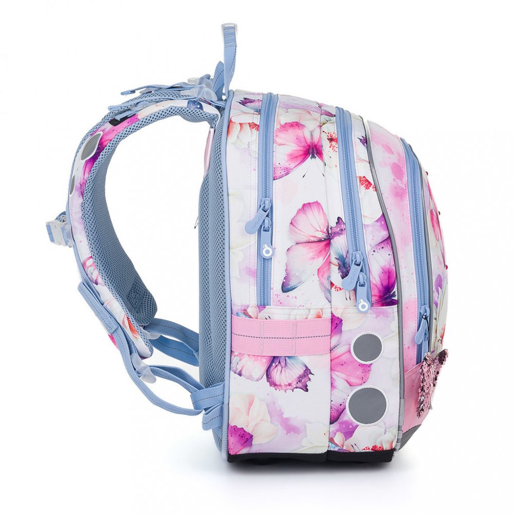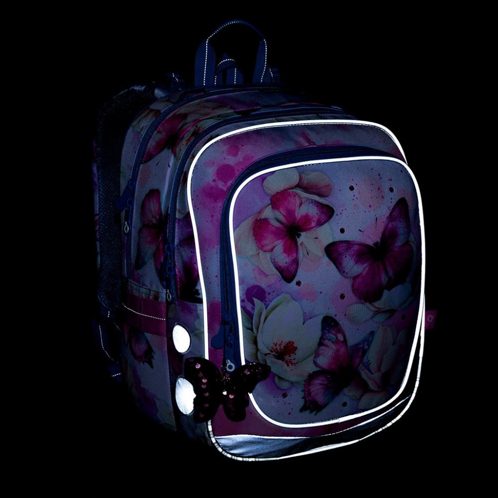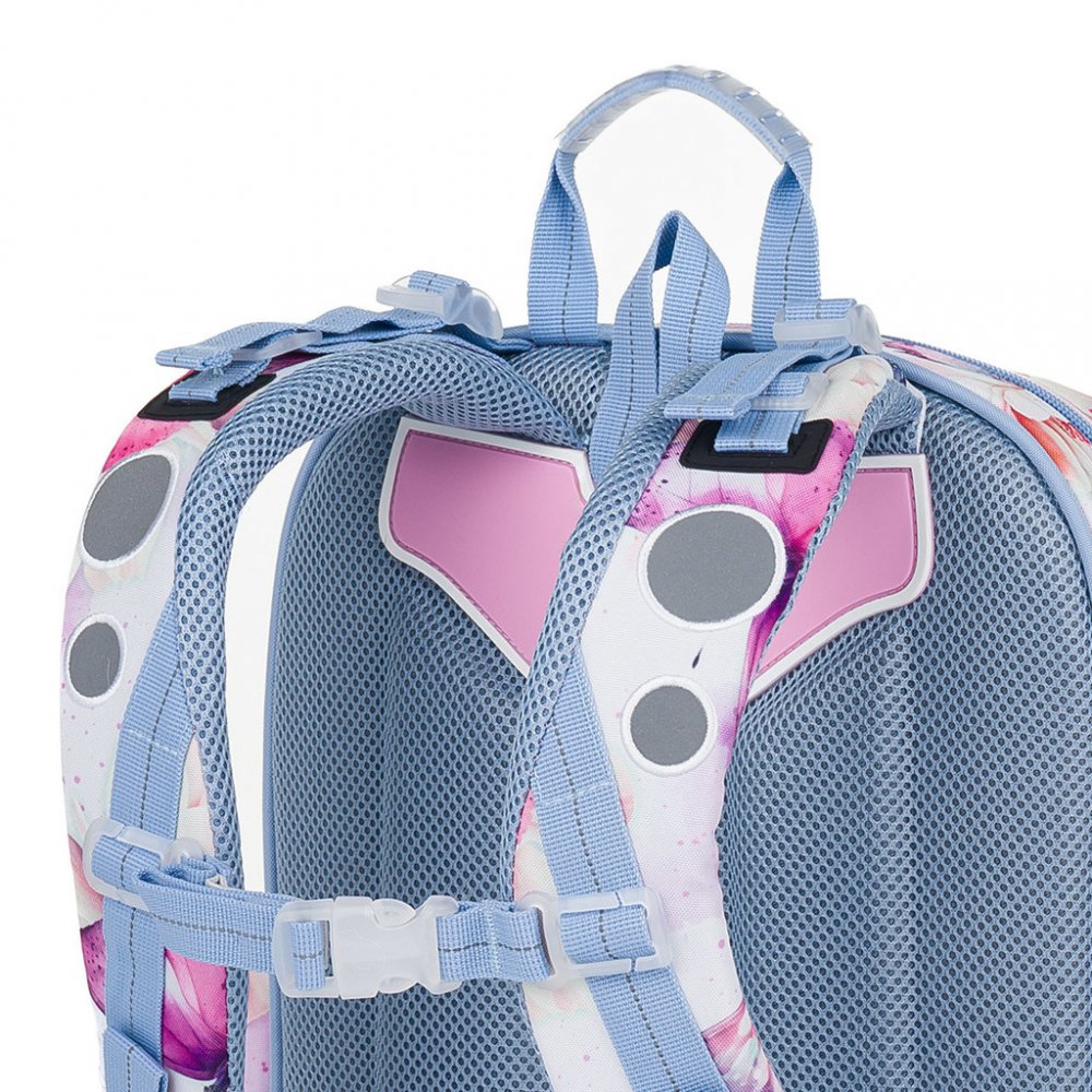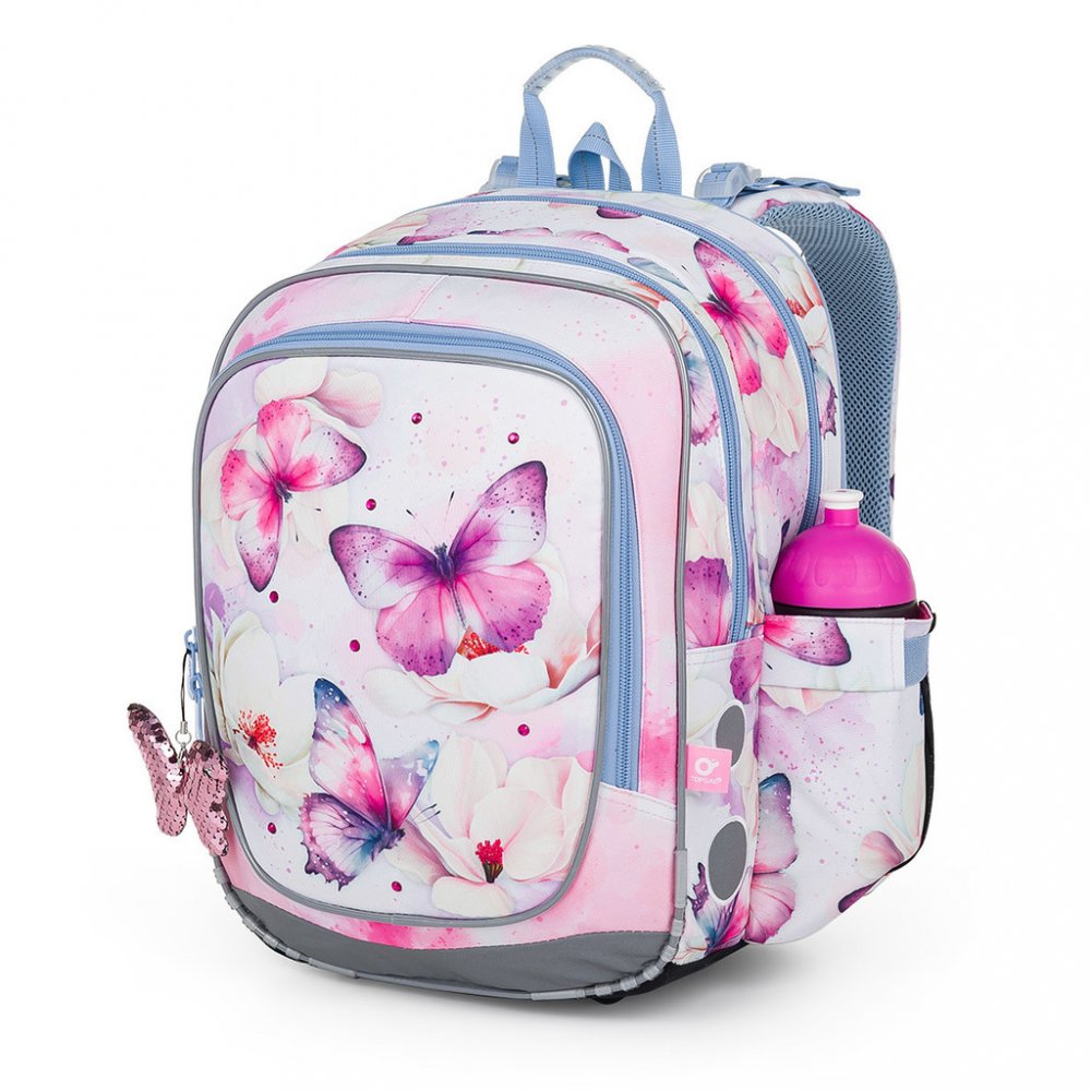 Školní dvoukomorový batoh Topgal ENDY 24002 je ideální pro holčičky s výškou od 110 cm, do první až třetí třídy ZŠ. Batoh má dvě objemné hlavní komory. Do nejširší zadní komory dejte nejtěžší učebnice nebo desky na sešity. Přední komora je o něco užší, je v ní ukrytá malá síťová kapsa na zip a jmenovka. Přední hluboká kapsa pojme např. penál nebo krabičku na svačinu. Do bočních kapes se vejdou zdr...