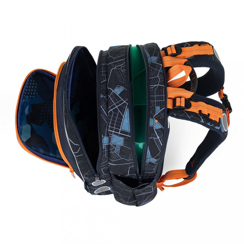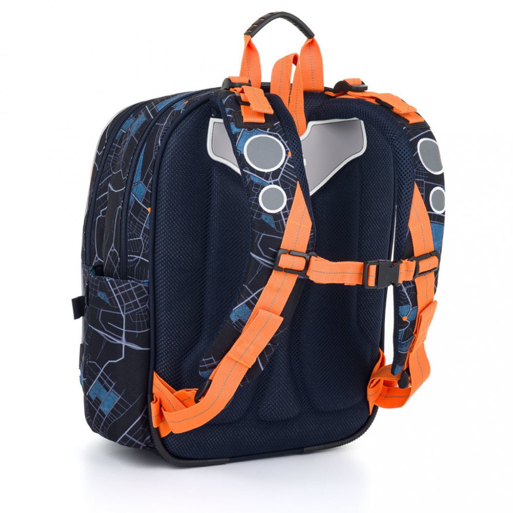 Junior batoh do školy ENDY 24012 neváží ani kilogram, proto je ideální pro kluky od první až do třetí třídy ZŠ. Batoh má dvě objemné hlavní komory. Zadní komora je širší - doporučujeme k zádům dávat nejtěžší učebnice nebo desky na sešity. Přední komora je o něco užší a je v ní umístěna ještě malá síťová kapsa na zip a jmenovka. Přední hluboká kapsa pojme např. penál PENN 24012 ve stejném designu n...