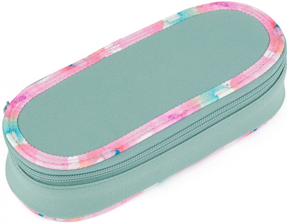 Oválný penál pro všechny starší školáky a studenty. Uvnitř pouzdra je síťová kapsička na zip a klopa. Na ní jsou umístěny gumičky pro uchycení celkem devíti tužek a propisek, které je potřeba mít přehledně uspořádané a po ruce. Volný prostor pod klopou slouží pro další psací potřeby – pastelky, fixy, ale i pravítko nebo kružítko.