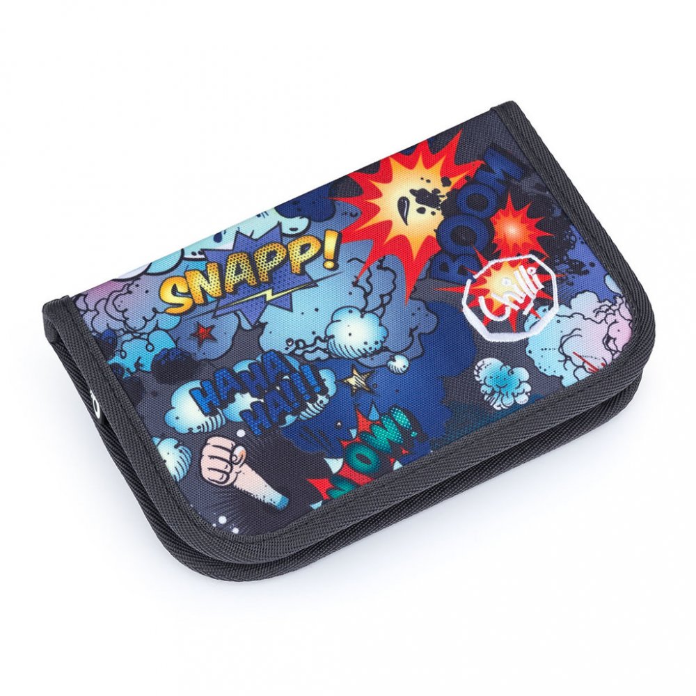 Jednopatrové školní pouzdro jsme vybavili osmnácti klasickými gumovými úchyty na pastelky a fixy, čtyřmi širšími úchyty na pravítka, kružítko či nůžky a dvěma většími úchyty na gumu a ořezávátko. Pod klopnou z průhledné folie najdete rozvrh hodin, ale toto místo poslouží třeba i na taháky :-)Penál je polstrovaný, takže spolehlivě ochrání všechny psací potřeby vašich dětí. Zapínání je řešeno kvalitními zipy s velkými taháčky, které umožňují dětem snadnou manipulaci s pouzdrem.