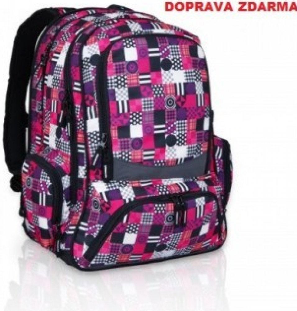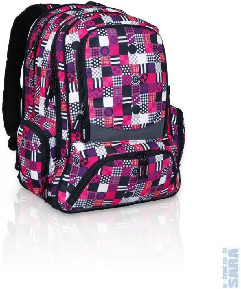 Batoh je doplněn o reflexní plochy, úchyt na přenášení batohu v ruce. Dno chrání zpevněný pogumovaný materiál.